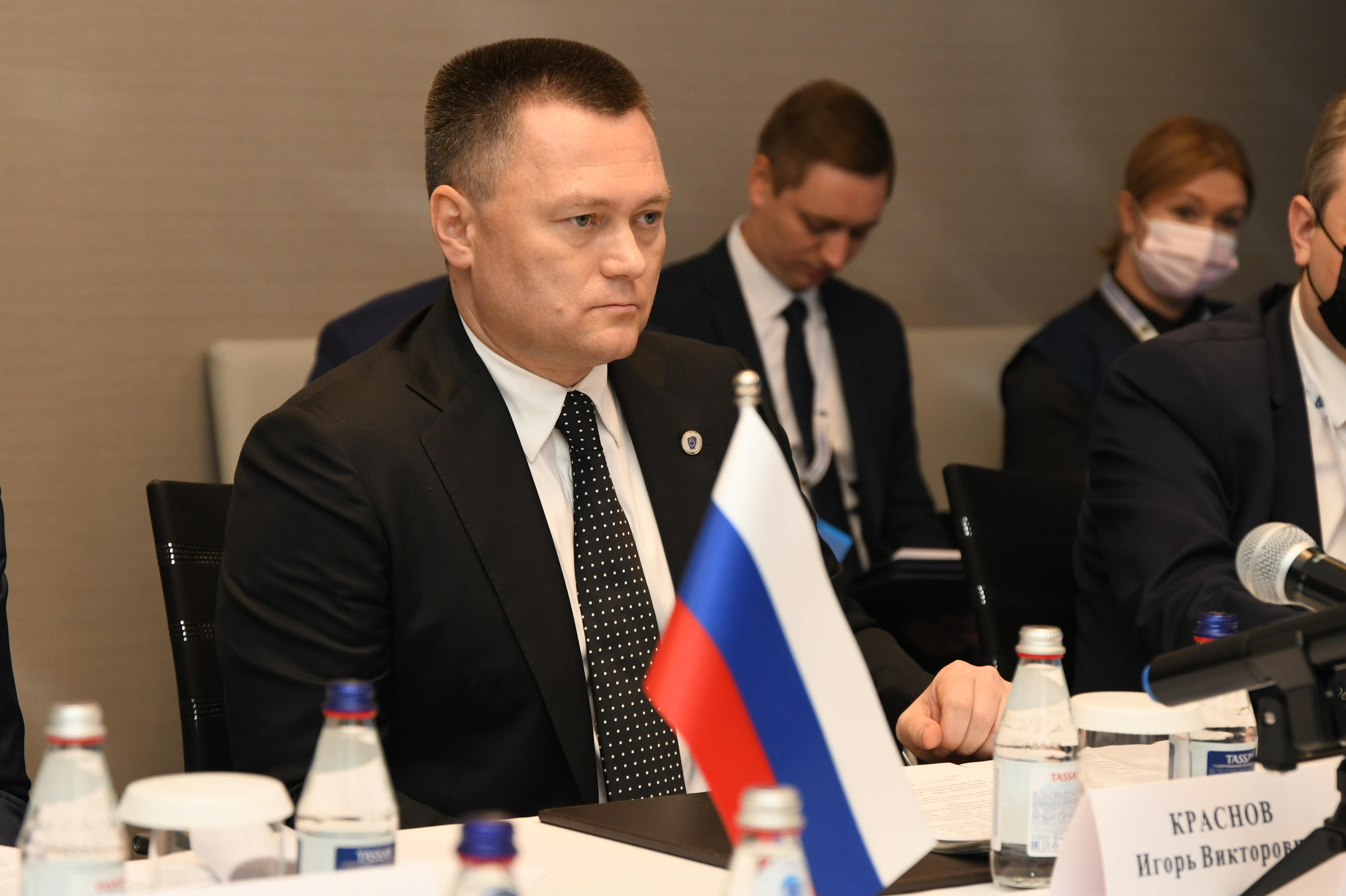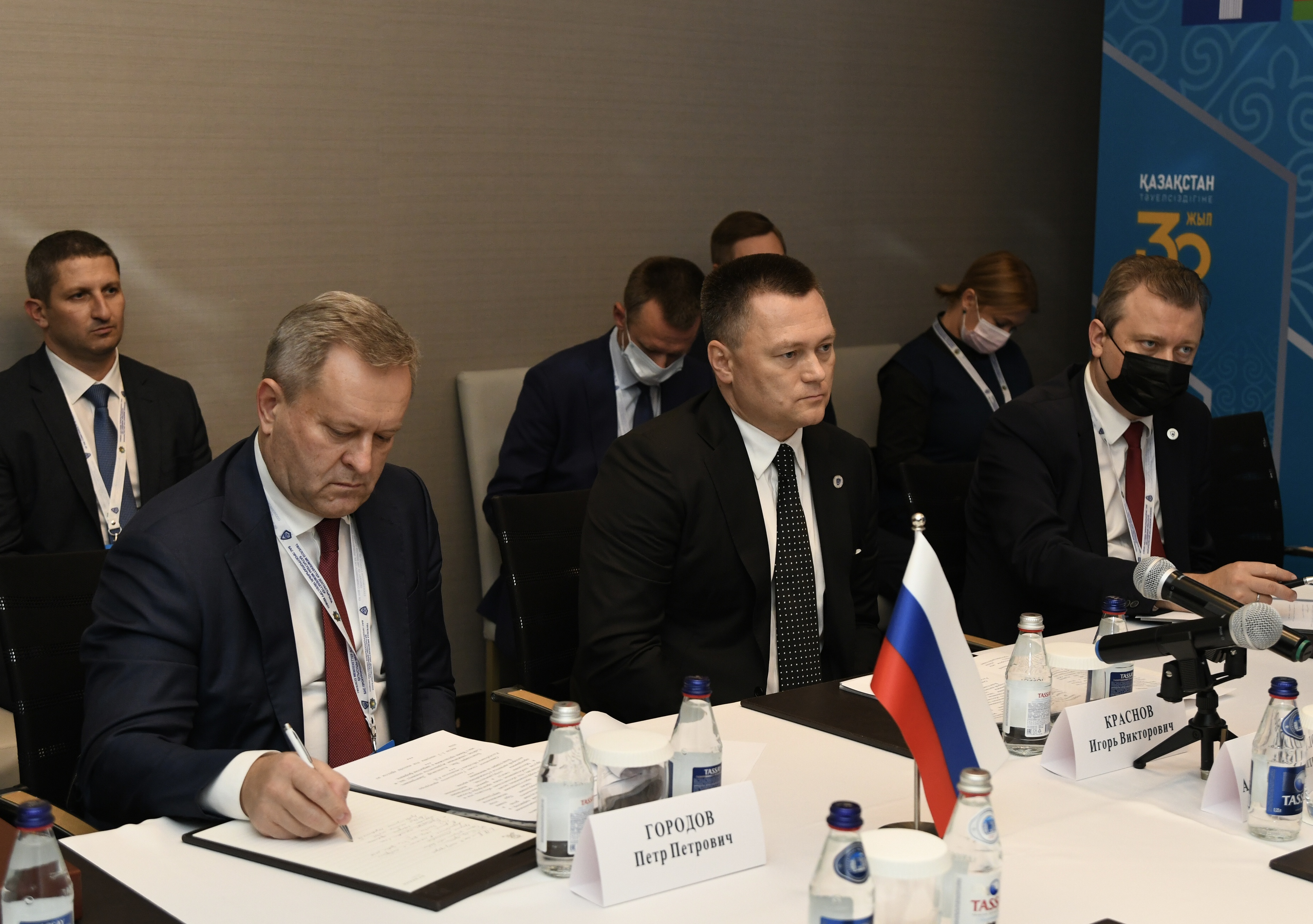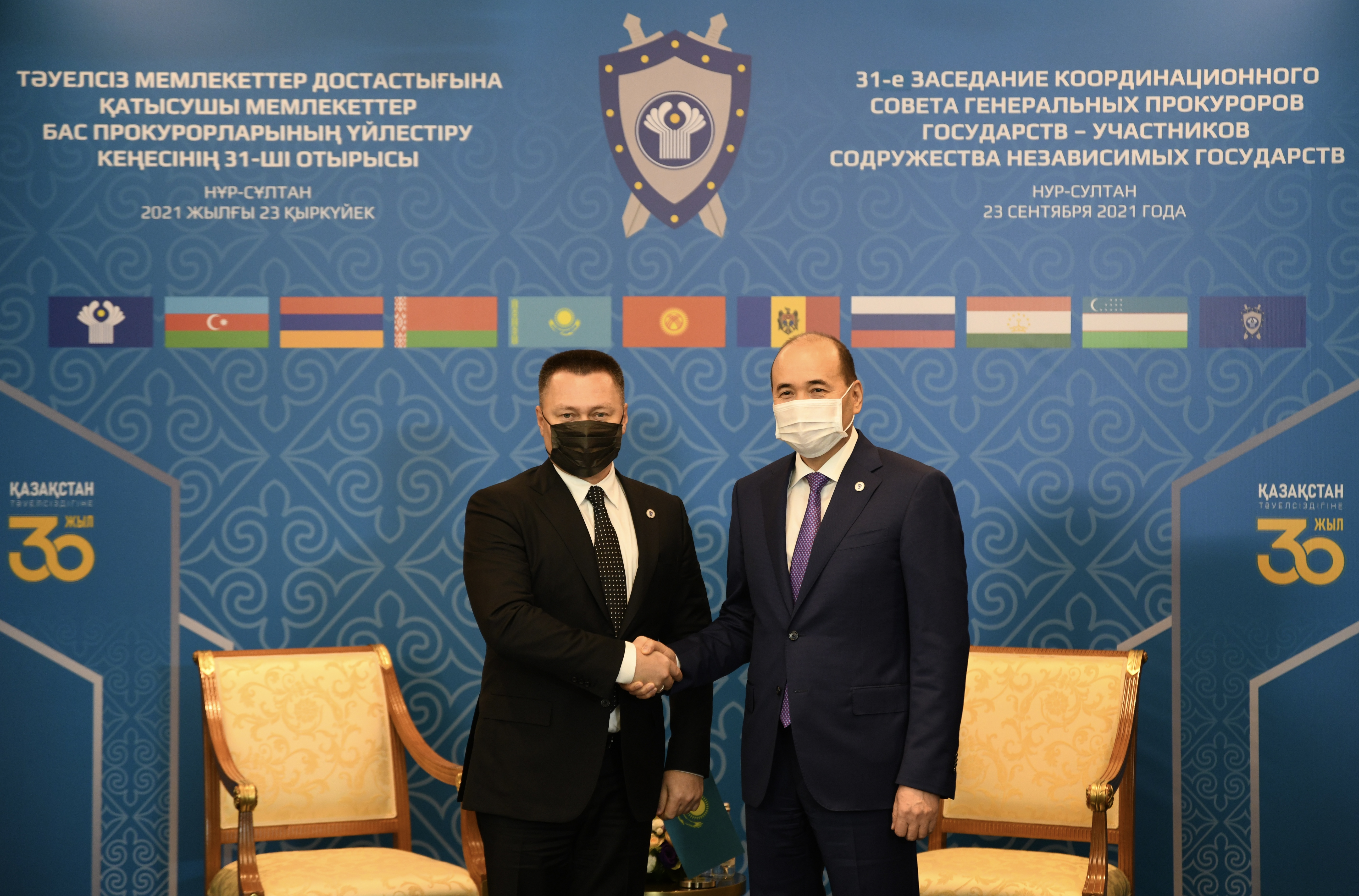Igor Krasnov held bilateral negotiations with Gizat Nurdauletov, Prosecutor General of the Republic of Kazakhstan. He thanked his Kazakh partner for the warm reception and hospitality in respect of the Russian delegation, and noted the importance of close coordination of work against modern challenges posed a threat to citizens of both respective States. In particular, he proposed to mobilize joint efforts to protect minors mainly from the negative effect of the Internet, which was becoming a platform for the widest range of crimes that did not have state borders. Igor Krasnov called manifestations of extremism in Russia and Kazakhstan as another urgent threat, especially taking into account the recent political events in Afghanistan, contributing to a real threat of entering radical individuals into the CIS territory.
