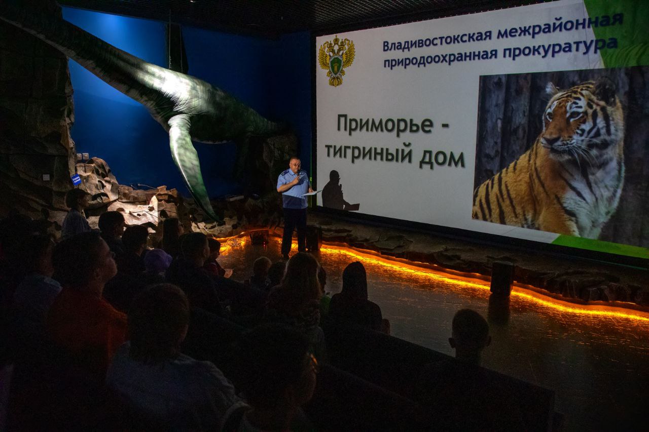 Владивостокским межрайонным природоохранным прокурором Романом Стеблянских в преддверии Международного дня тигра проведено лекционное занятие в научно-образовательном комплексе «Приморский океанариум» на тему «Приморье – тигриный дом» среди посетителей океанариума: детей и их родителей, а также воспитанников проекта «Растем вместе».