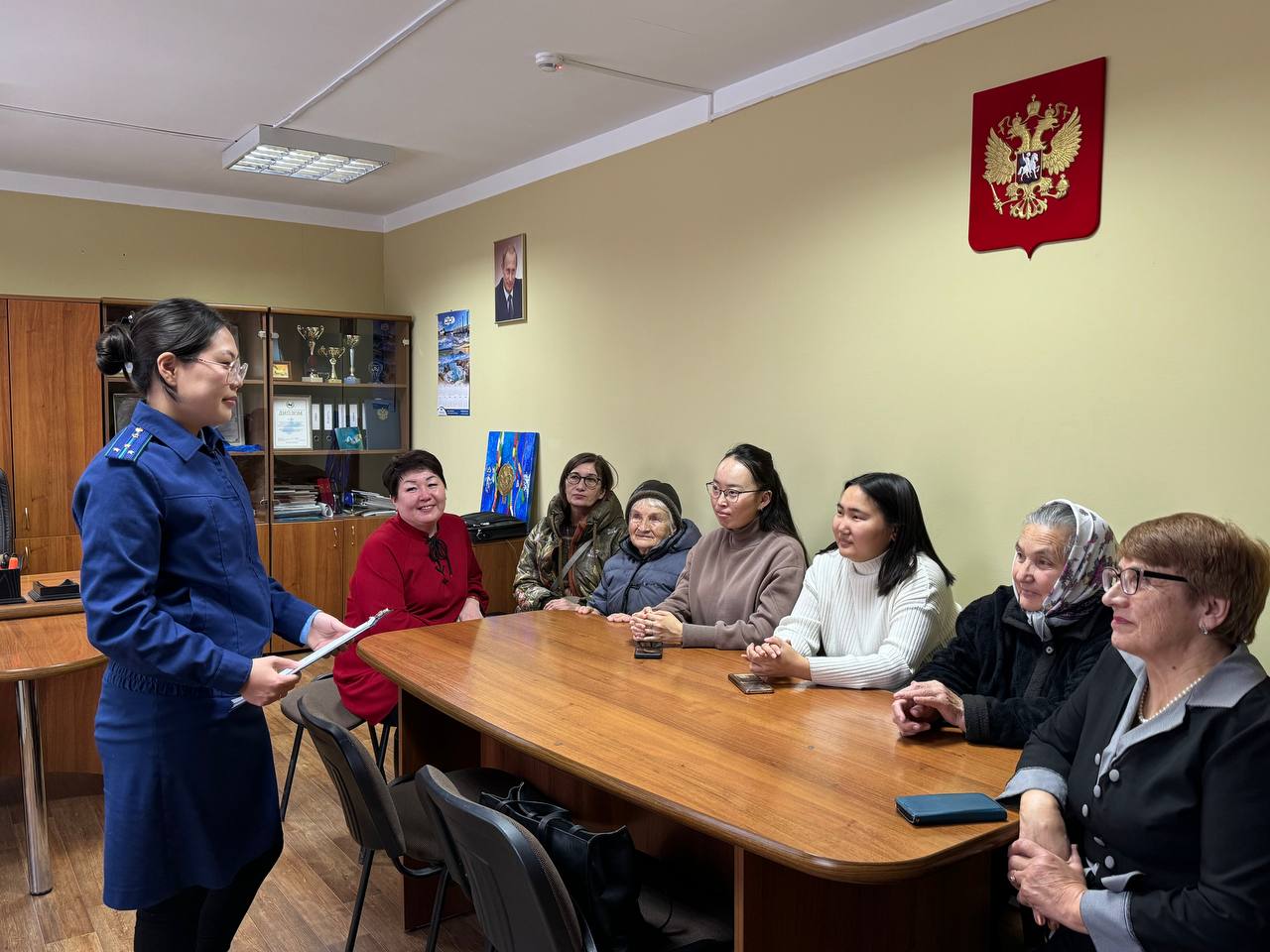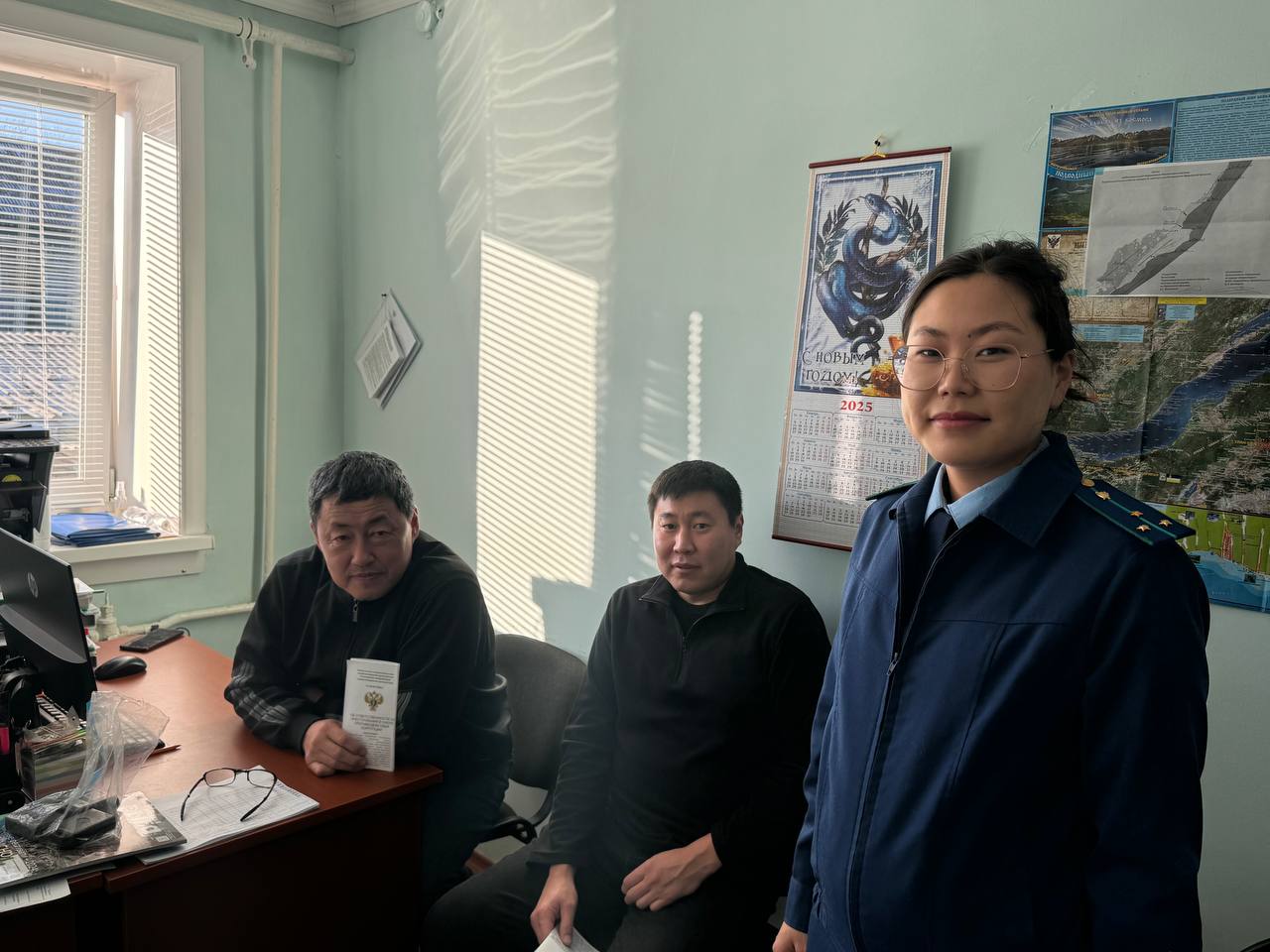 В целях повышения правовой грамотности старший помощник межрайонного природоохранного прокурора Аягма Самбуева провела лекции по вопросам противодействия коррупции в трудовых коллективах Территориального отдела контроля, надзора и рыбоохраны по Иркутской области (Ольхонский участок в с.Еланцы), администрации Хужирского муниципального образования, гражданами п. Хужир Ольхонского района.