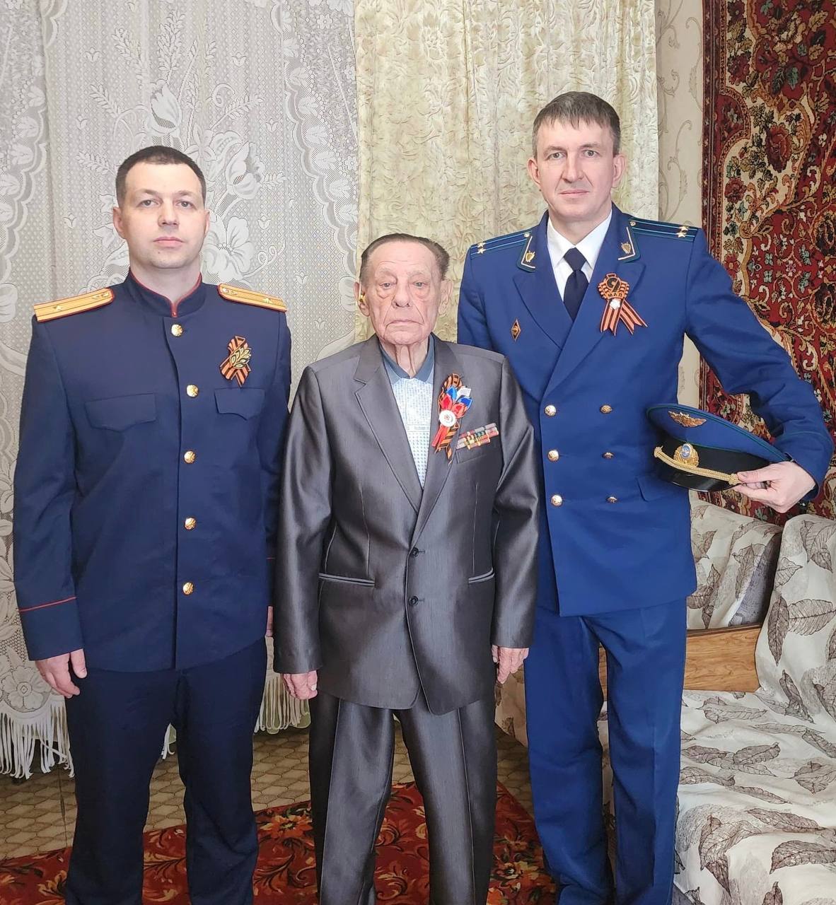 Тындинский транспортный прокурор Александр Ионов совместно с руководителем Тындинского отдела Восточного МСУТ СК России Александром Усенко поздравили с наступающим праздником ветерана Великой Отечественной войны Николая Васильевича Козлова