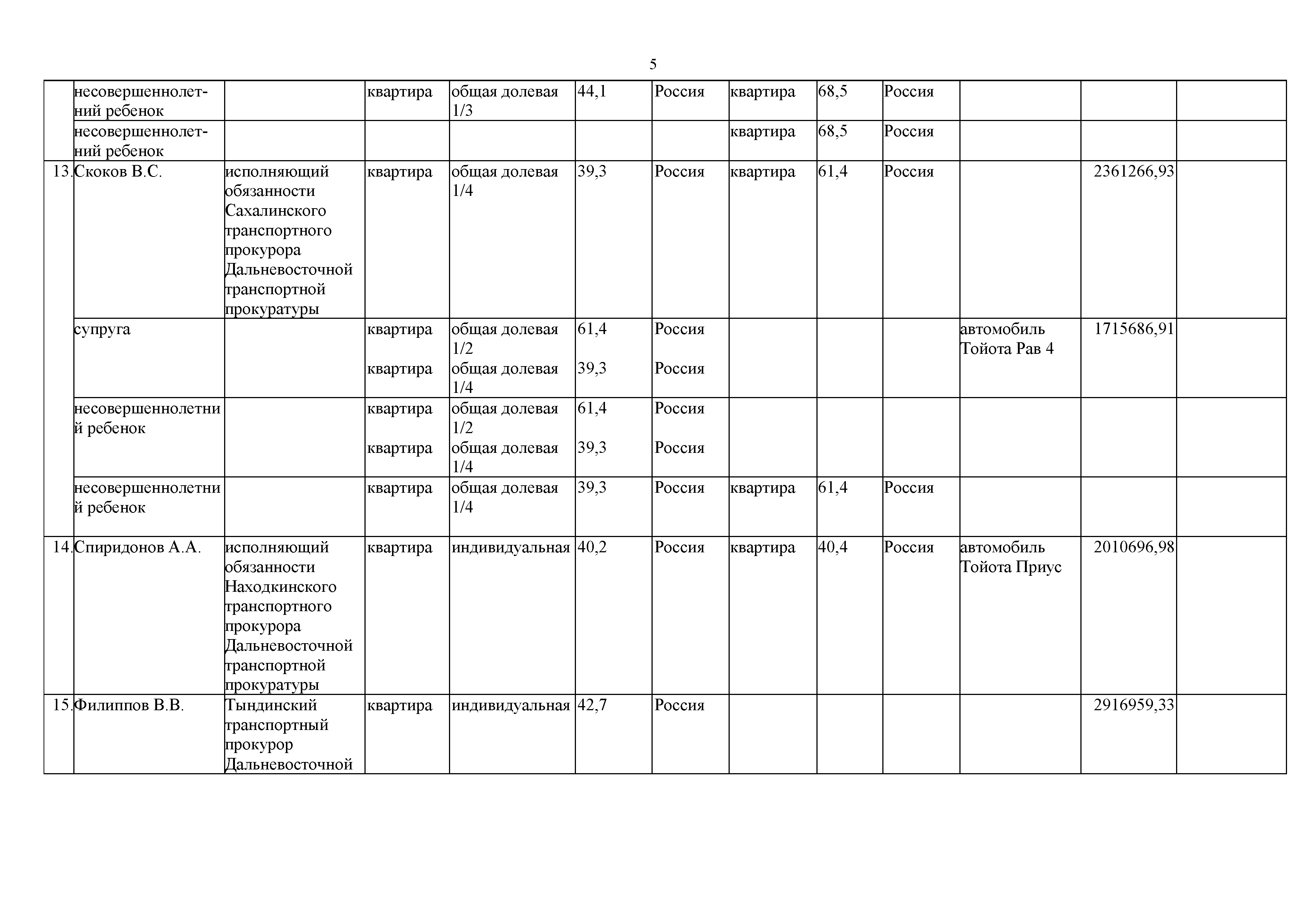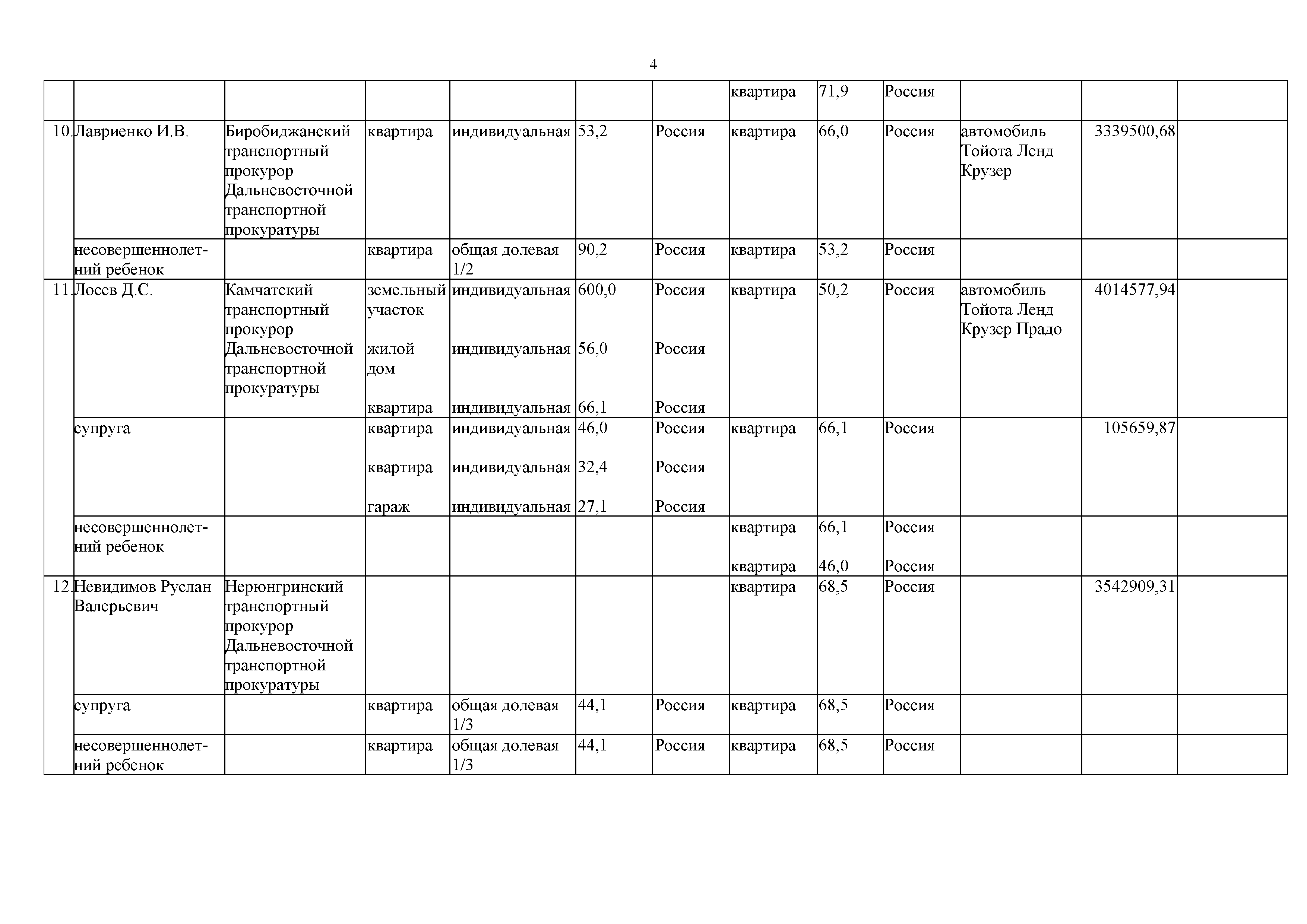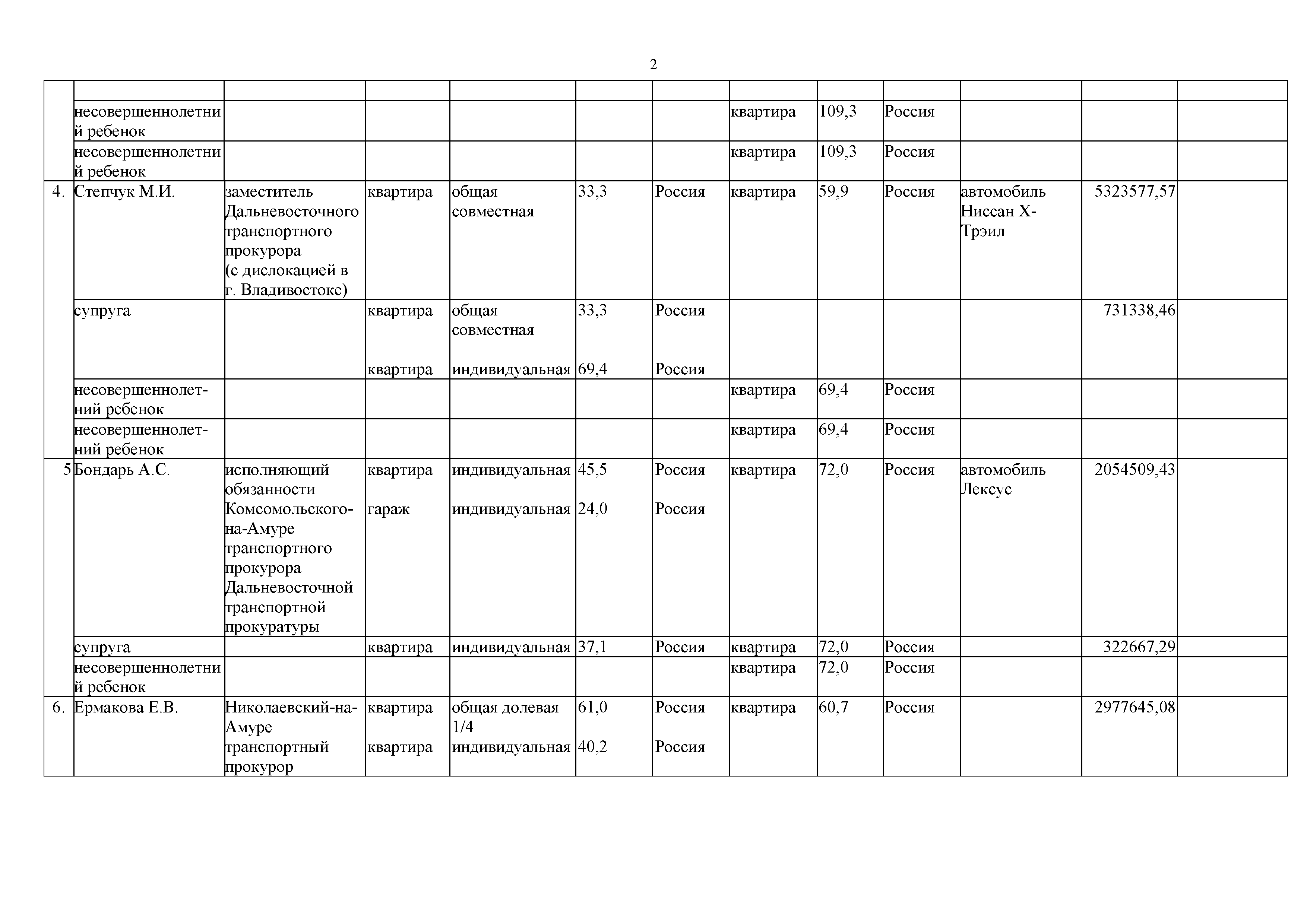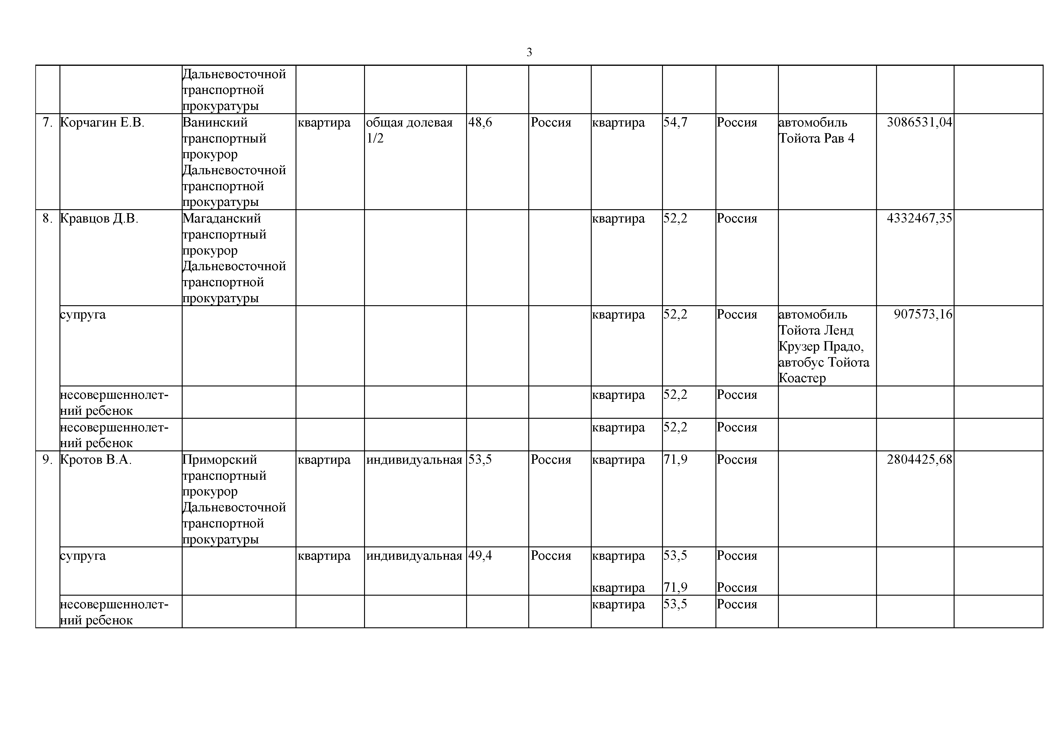 Сведения о доходах, расходах, об имуществе и обязательствах имущественного характера федеральных государственных служащих, замещающих должности в Дальневосточной транспортной прокуратуре, и членов их семей за период с 1 января 2019 г. по 31 декабря 2019