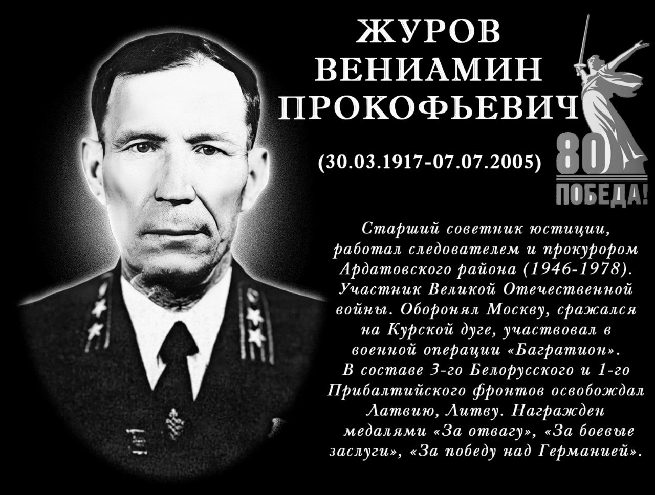 В Ардатовском и Зубово-Полянском районах республики открыты Мемориальные доски ветеранам прокуратуры Мордовии Вениамину Прокофьевичу Журову и Борису Яковлевичу Кильмаеву, защищавшим Родину в годы Великой Отечественной войны.