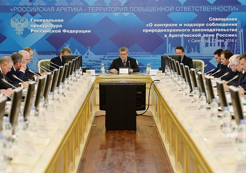Сегодня, 27 мая 2016 года в г. Салехарде (Ямало-Ненецкий автономный округ) состоялось оперативное совещание при Генеральном прокуроре Российской Федерации Юрии Чайке по вопросу повышения эффективности контрольно-надзорной деятельности в сфере соблюдения законодательства об охране окружающей природной среды субъектами недропользования в Арктической зоне России.