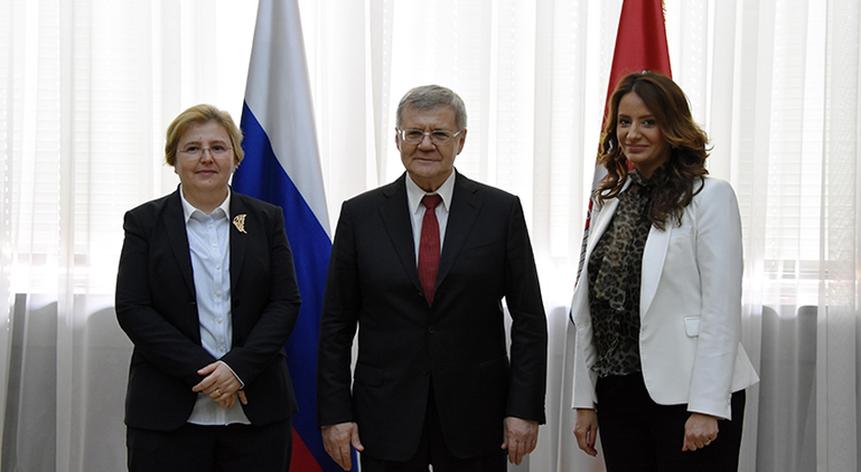 В завершение своего рабочего визита в Белград Генеральный прокурор Российской Федерации Юрий Чайка встретился с Министром юстиции Республики Сербии Нэлой Кубурович. В ходе встречи он выразил уверенность в том, что одним из приоритетных направлений партнерства России и Сербии является, в том числе, взаимодействие в правовой сфере, в целях обеспечения верховенства закона, защиты индивидуальных прав и общественных интересов, создания условий для стабильного развития наших государств.
