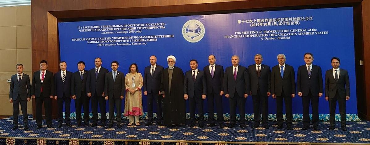 Сегодня, 1 октября 2019 года, в городе Бишкеке (Кыргызская Республика) состоялось 17-е заседание Генеральных прокуроров государств-членов Шанхайской организации сотрудничества (ШОС), в работе которого участвовали руководители прокурорских служб государств-членов ШОС: Индии, Казахстана, Китая, Киргизии, Пакистана, России, Таджикистана и Узбекистана, а также представители Секретариата ШОС, КСГП государств – участников СНГ, Региональной антитеррористической структуры ШОС, Международной ассоциации прокуроров (МАП).