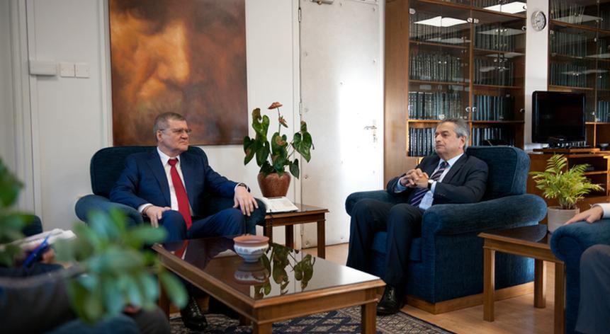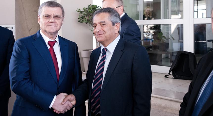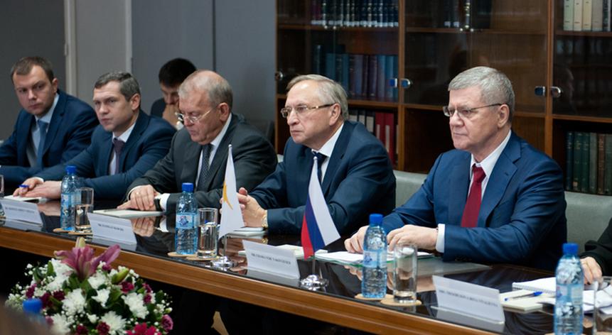 После этого делегация российских прокуроров во главе с Генеральным прокурором Российской Федерации Юрием Чайкой встретилась с Генеральным прокурором Республики Кипр Костасом Клиридисом.