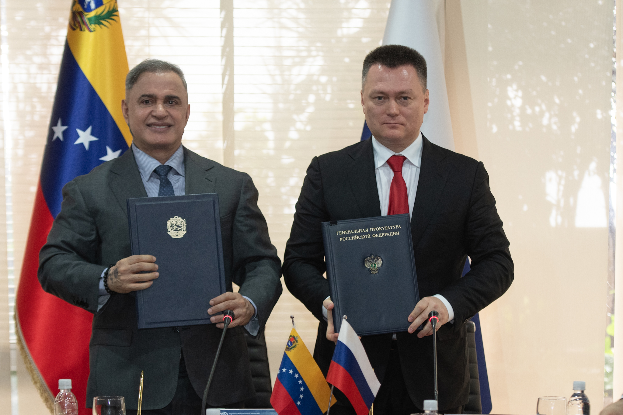 В целях развития двустороннего взаимодействия Игорь Краснов и Тарек Сааб подписали Соглашение о сотрудничестве между Генеральной прокуратурой Российской Федерации и Генеральной прокуратурой Боливарианской Республики Венесуэла, которое будет способствовать достижению практических результатов в области борьбы с преступностью, защиты прав и свобод человека, а также станет правовым основанием для участия венесуэльских прокуроров в обучающих мероприятиях и получения студентами республики высшего образования в Университете прокуратуры Российской Федерации.