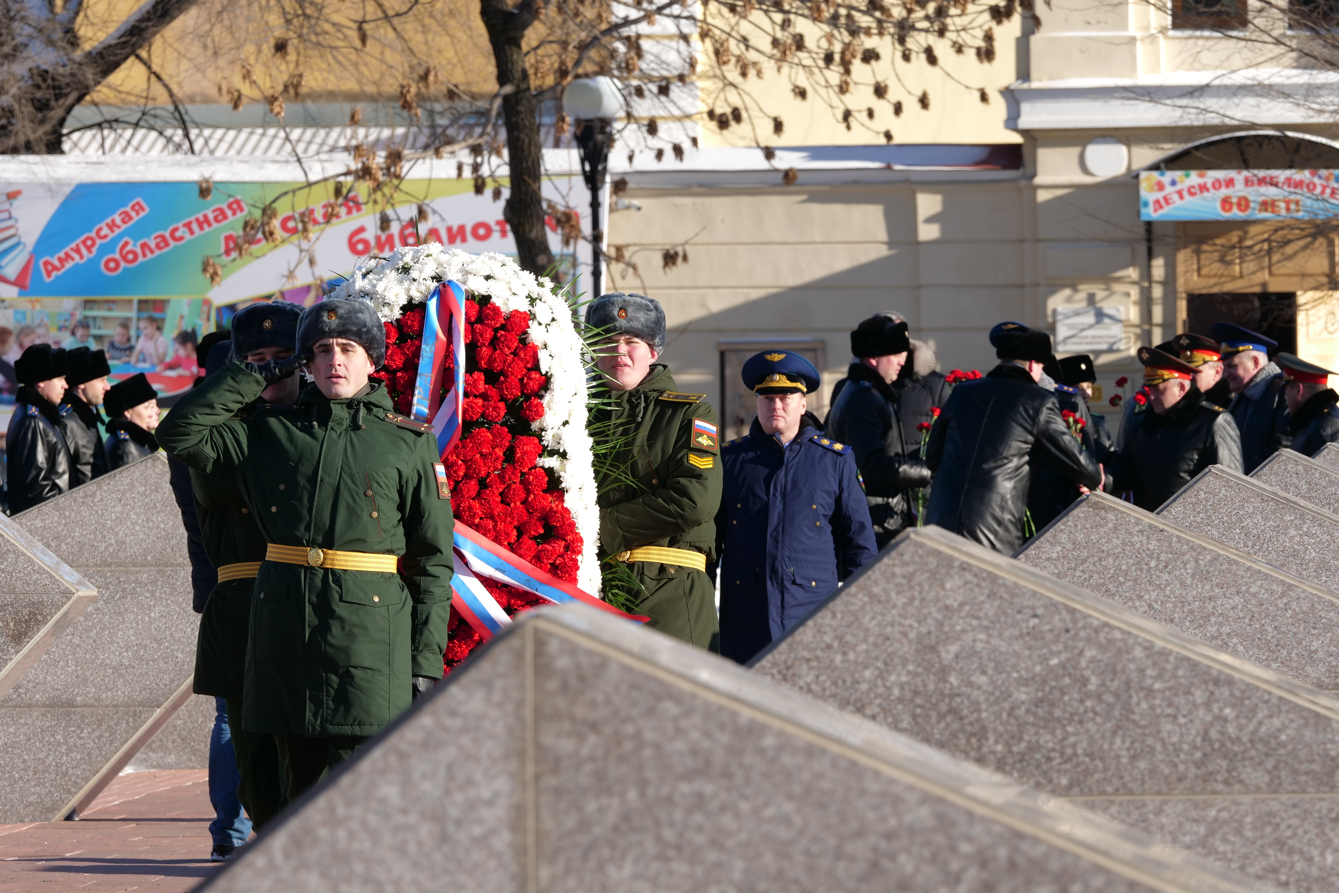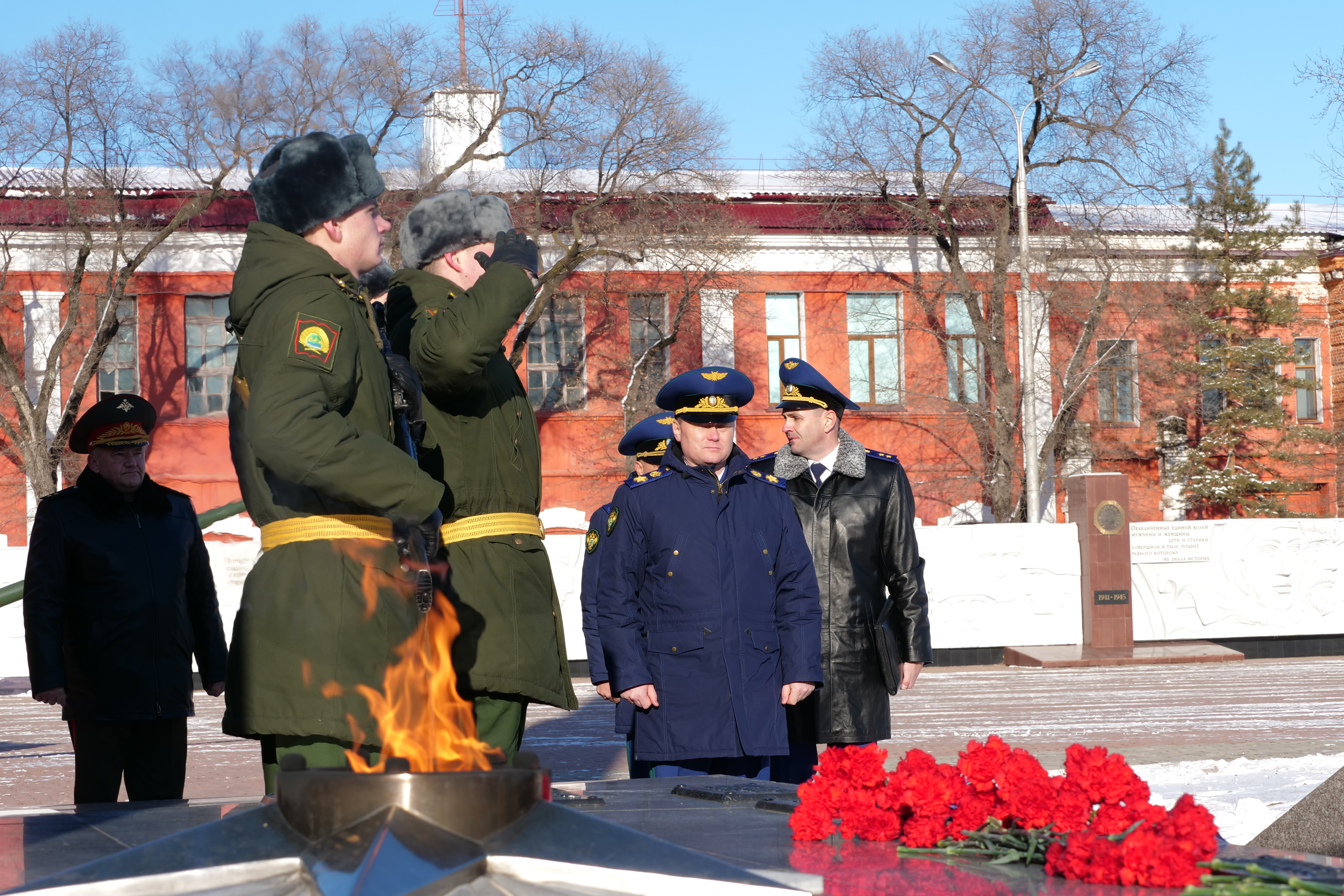 Также в ходе рабочей поездки Генпрокурор России возложил венок к Вечному огню у памятника воинам-амурцам, погибшим в годы Великой Отечественной войны. Мемориал на площади Победы горожане заложили в двадцатую годовщину окончания войны, чтя память о погибших земляках.