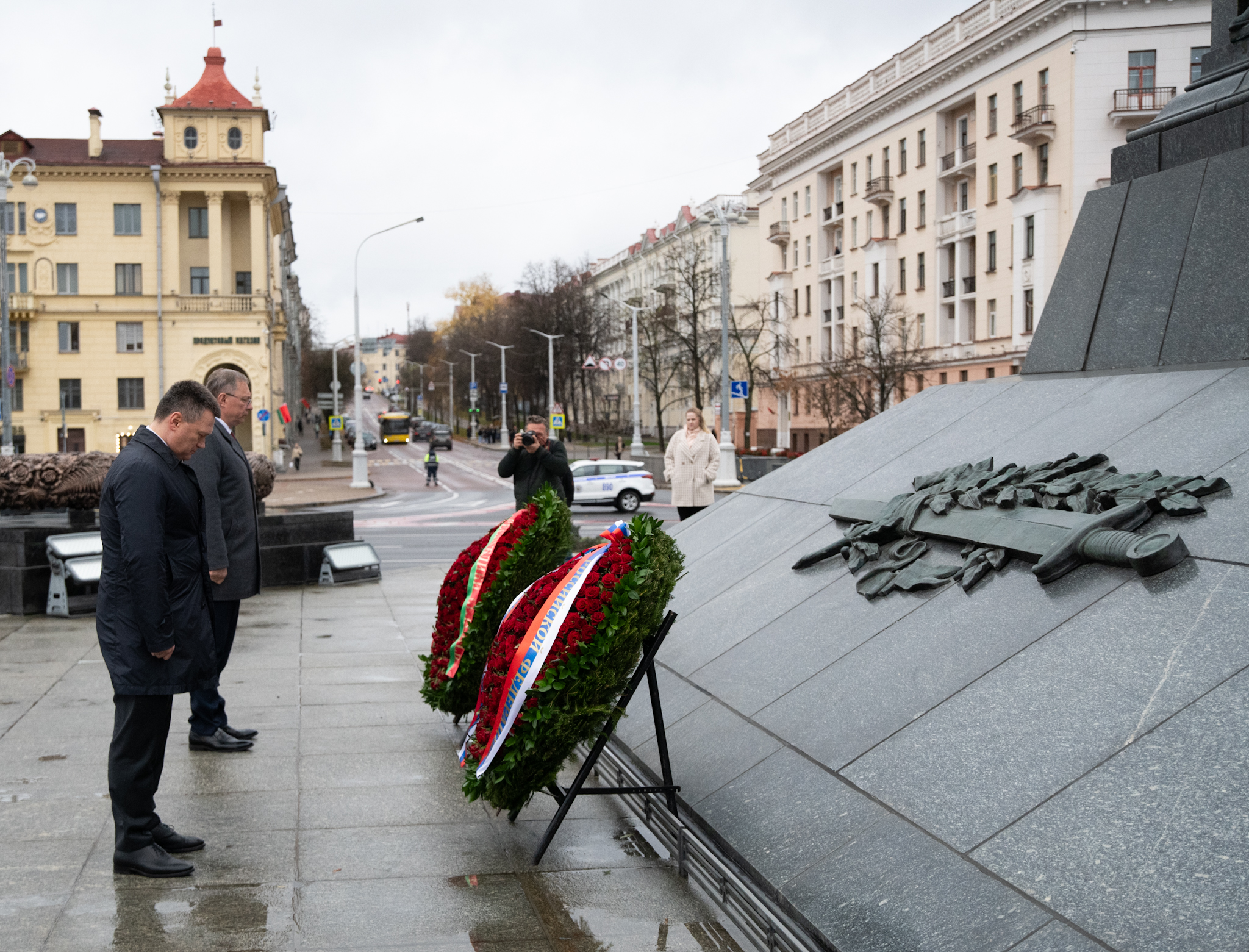 По завершении мероприятия Игорь Краснов возложил цветы к Вечному огню у Монумента Победы. Обелиск на Площади Победы в столице Белоруссии был установлен в память о воинах Советской армии, партизанах и подпольщиках, отдавших жизни в борьбе с фашизмом в годы Великой Отечественной войны.