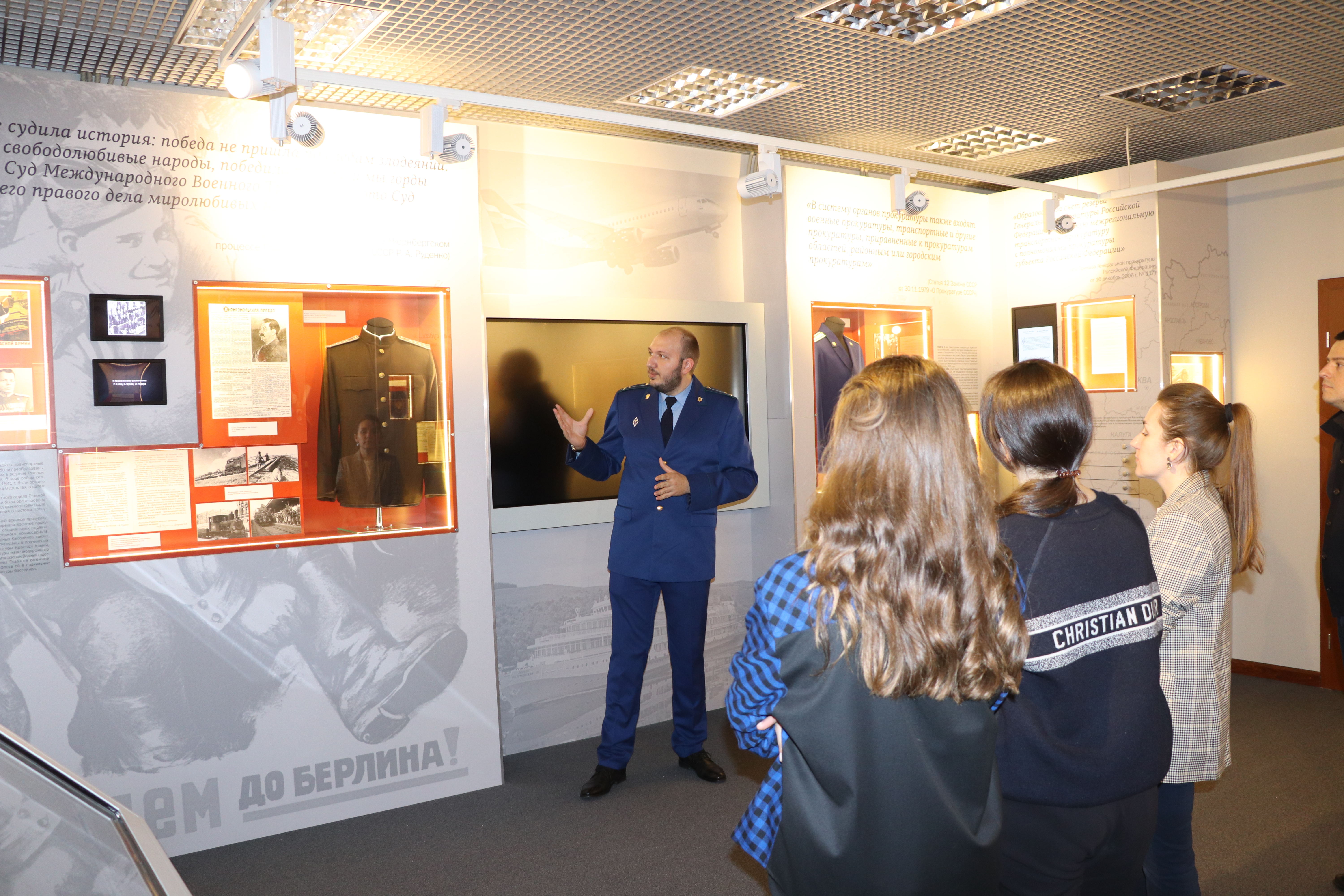 Старший помощник прокурора по взаимодействию со средствами массовой информации и общественностью Екатерина Короткова продемонстрировала экспозицию постоянно действующей выставки Московской межрегиональной транспортной прокуратуры.