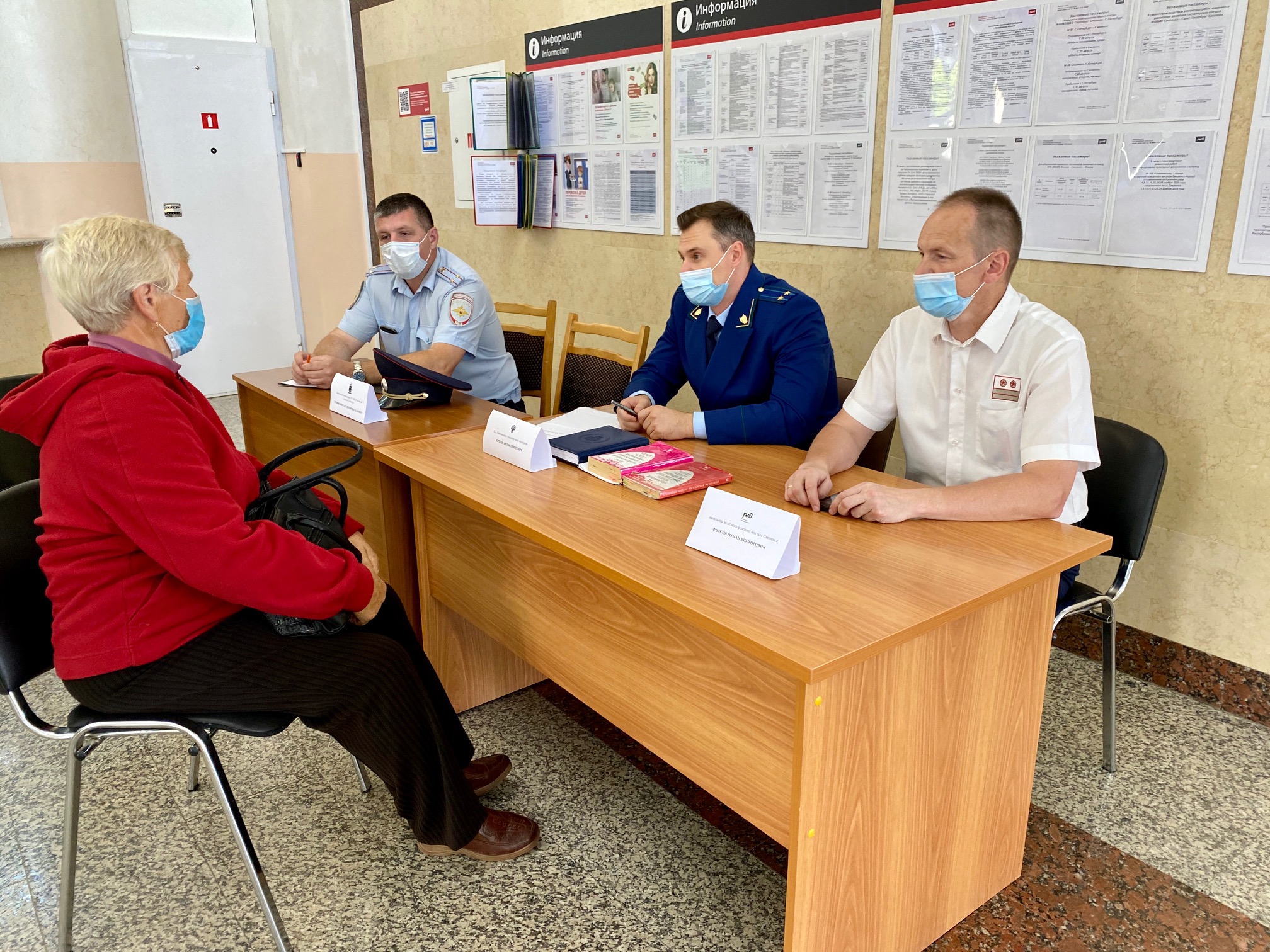 Исполняющий обязанности Смоленского транспортного прокурора Антон Зоркин совместно с заместителем начальника ЛО МВД России на станции Смоленск, начальником железнодорожного вокзала Смоленск Московской региональной дирекции железнодорожных вокзалов – структурного подразделения дирекции железнодорожных вокзалов – филиала ОАО «Российские железные дороги» провели выездной прием граждан на железнодорожном вокзале Смоленск.