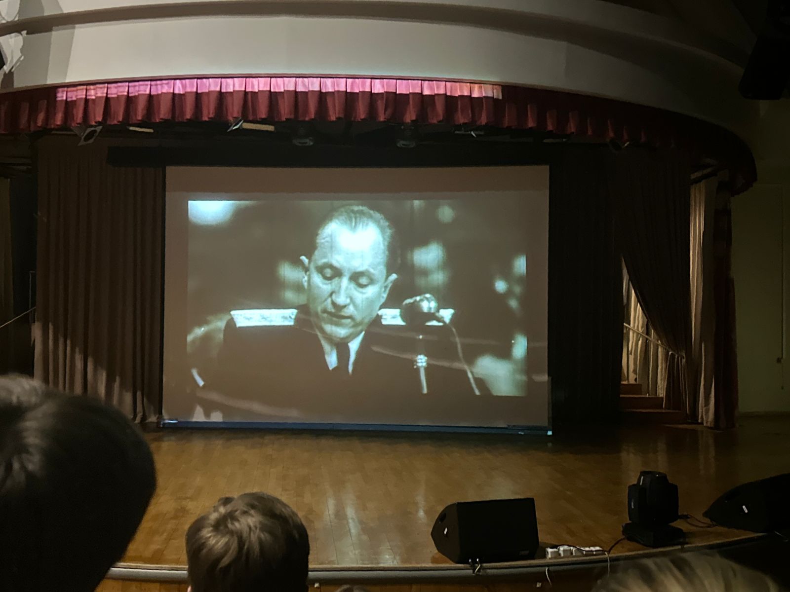 После дискуссии школьникам показали документальный фильм Александра Григорьевича Звягинцева «Нюрнбергский процесс».