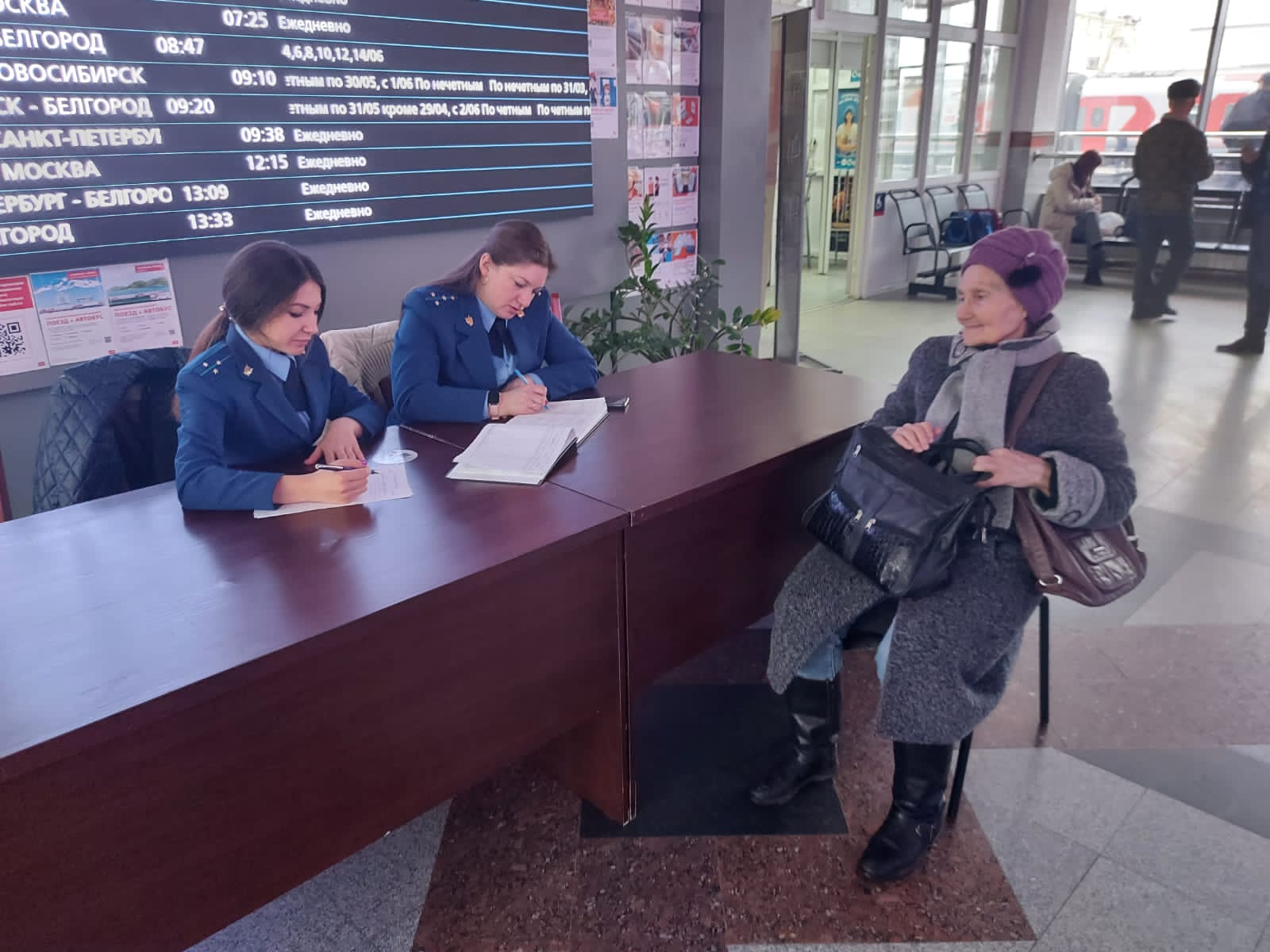 Вчера, 16 марта 2023 года, в здании железнодорожного вокзала «Белгород» проведено социально-профилактическое мероприятие «Час пассажира», в котором приняли участие заместитель Белгородского транспортного прокурора Оксана Тарасова, помощник транспортного прокурора Мария Бирюкова, заместитель начальника Белгородского ЛО МВД России на транспорте Павел Скляренко, заместитель начальника железнодорожного вокзала «Белгород» Надежда Аношкина.