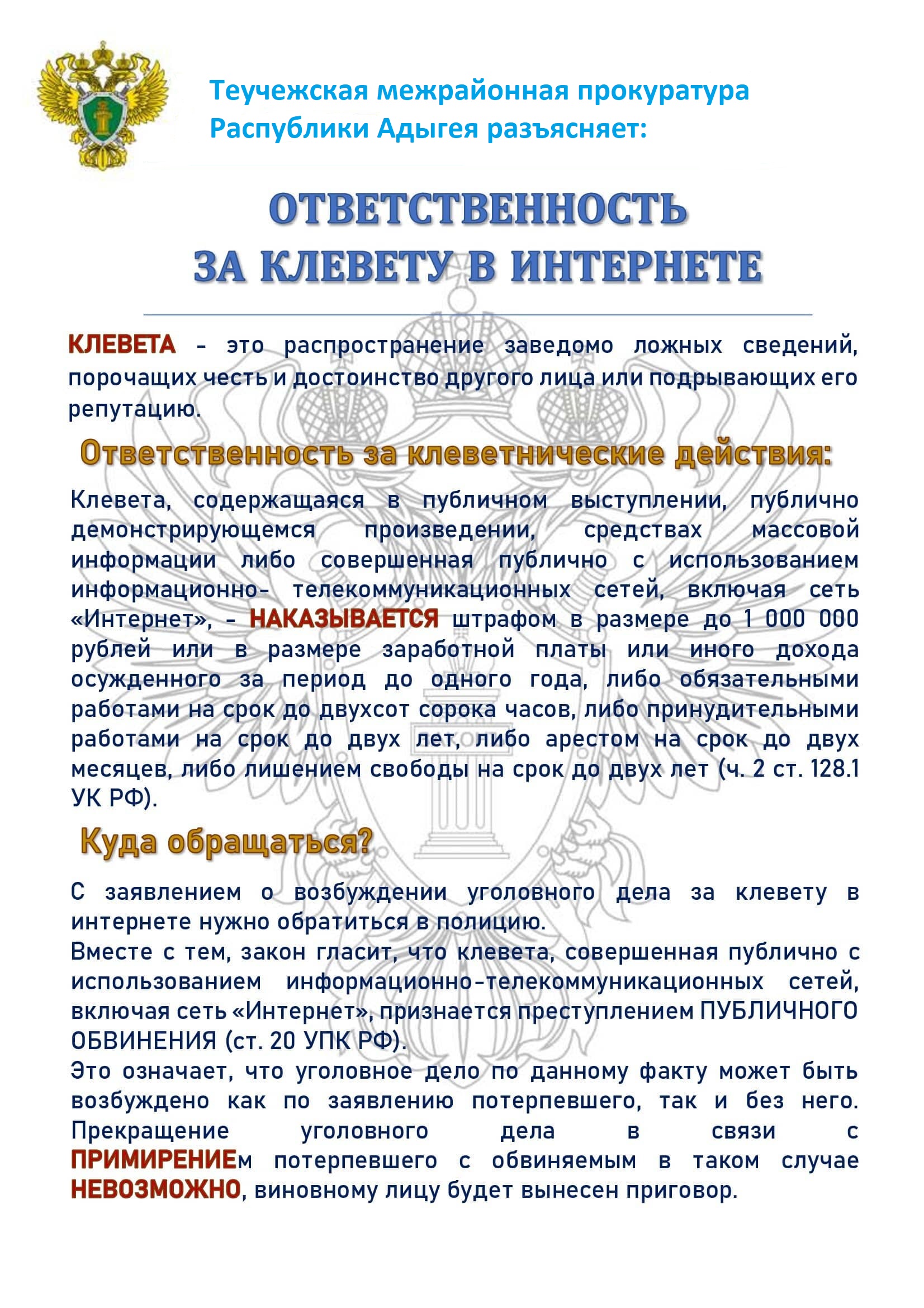 Ответственность за клевету в интернете. Порядок действий пострадавшего лица.