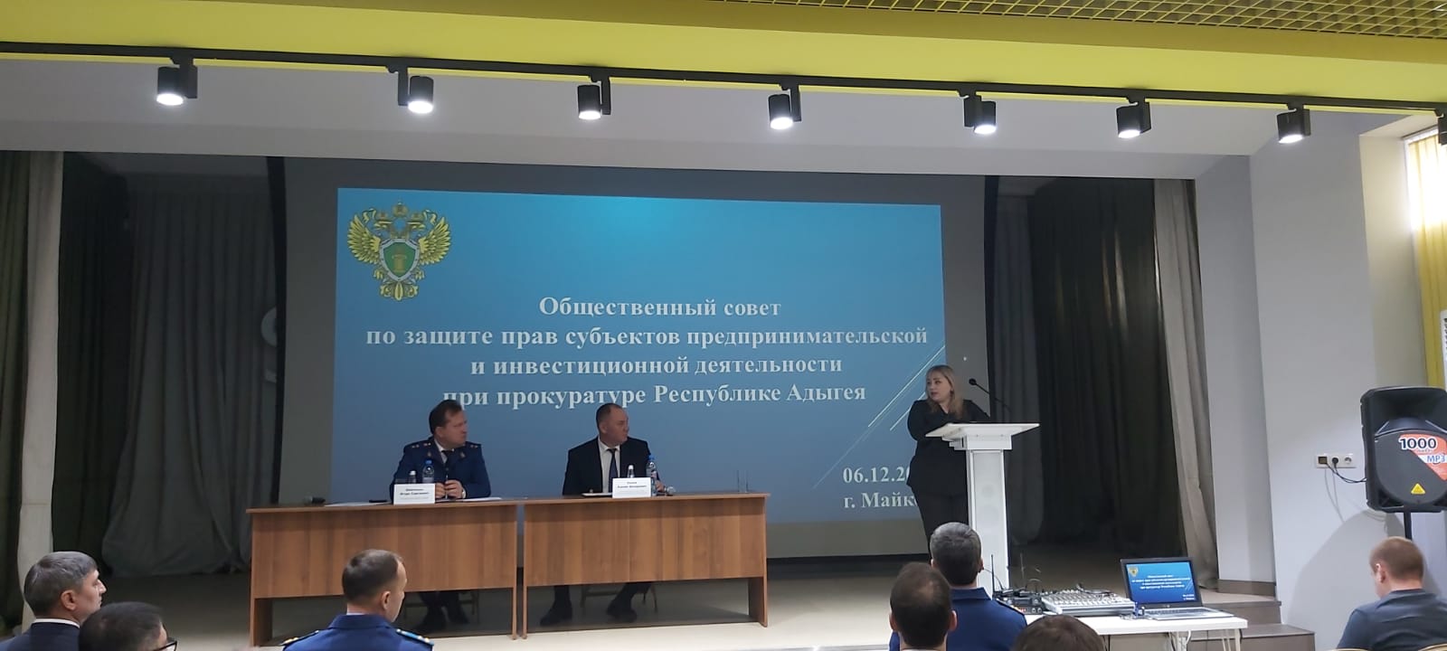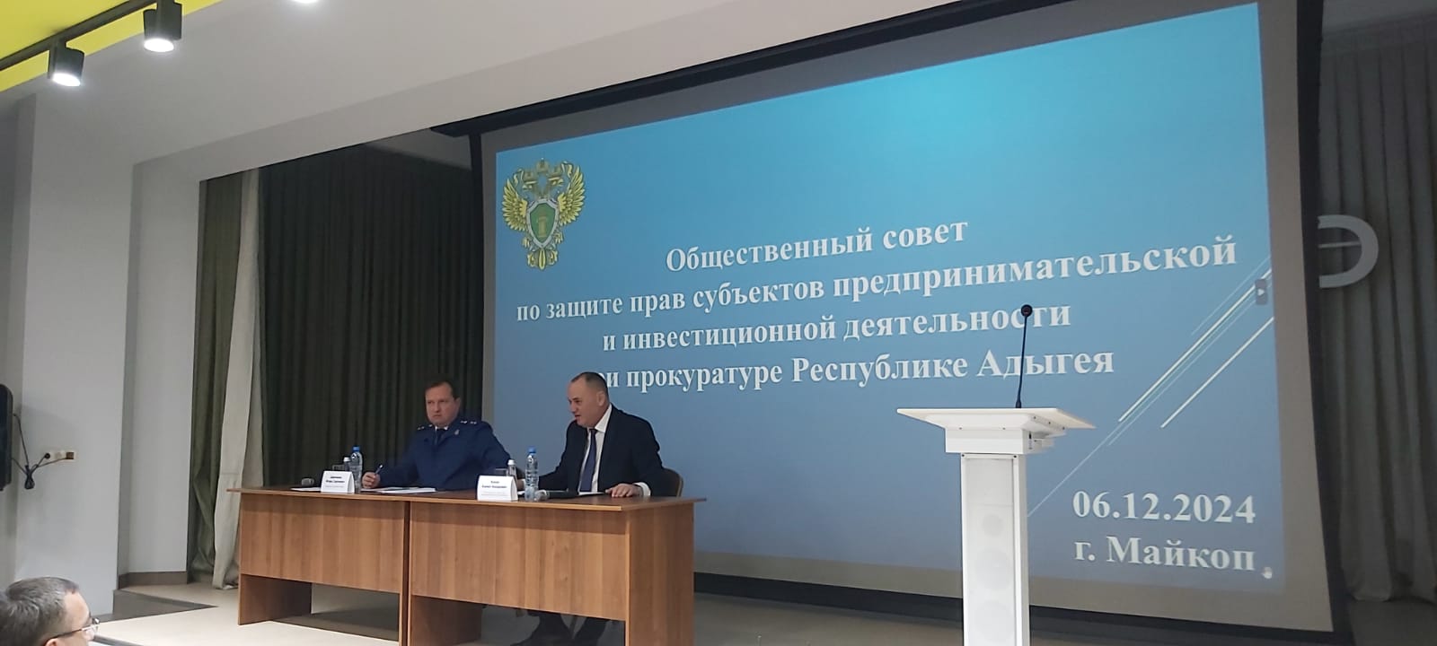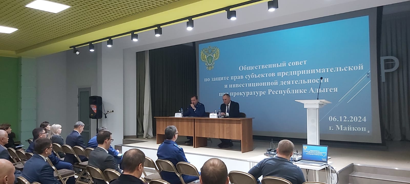 Под председательством прокурора Республики Адыгея Игоря Шевченко состоялось очередное заседание Общественного совета по защите прав субъектов предпринимательской и инвестиционной деятельности при прокуратуре Республики Адыгея