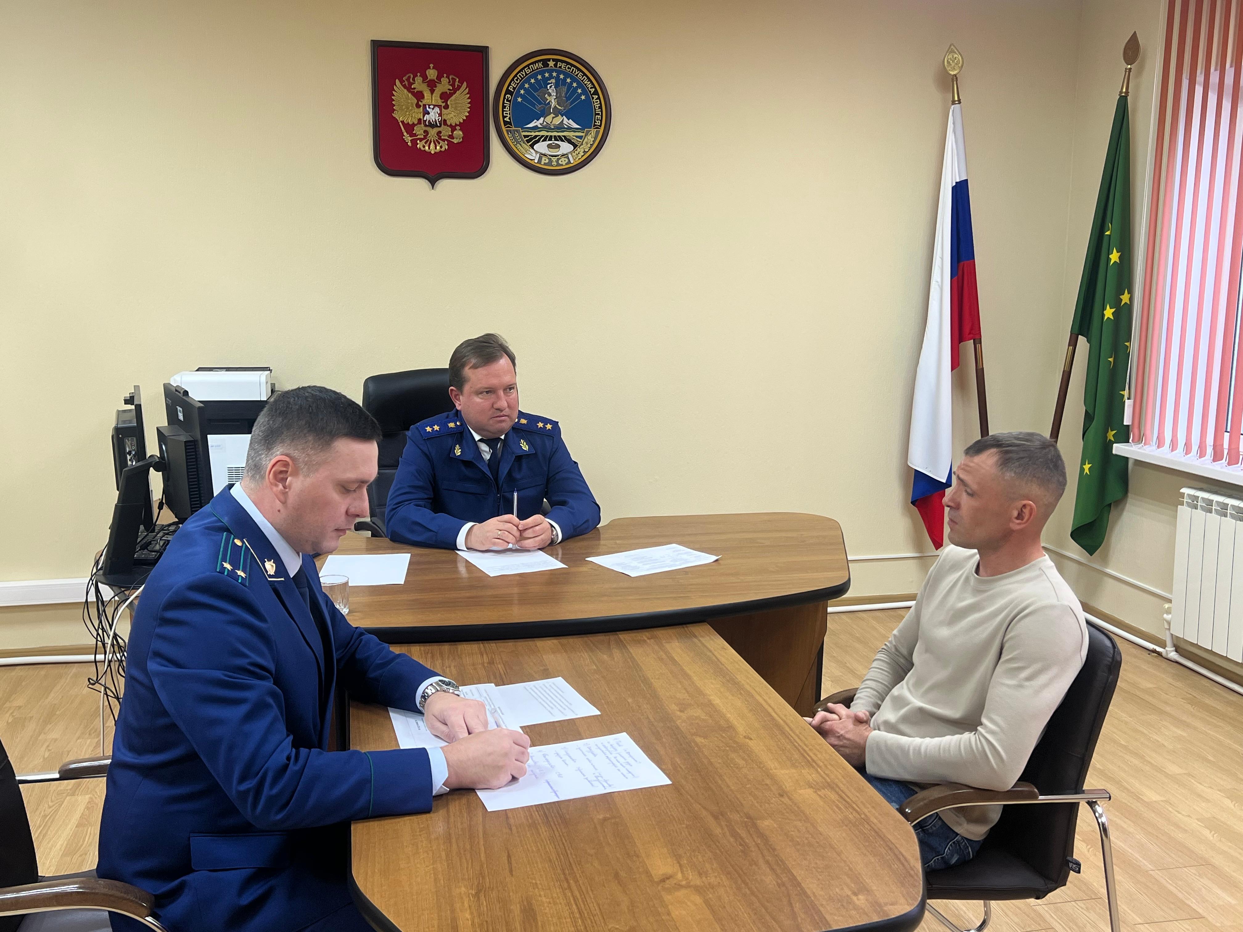 Прокурор Республики Адыгея Игорь Шевченко провел выездной личный прием граждан, в том числе участника и членов семей участников СВО, в прокуратуре Шовгеновского района.