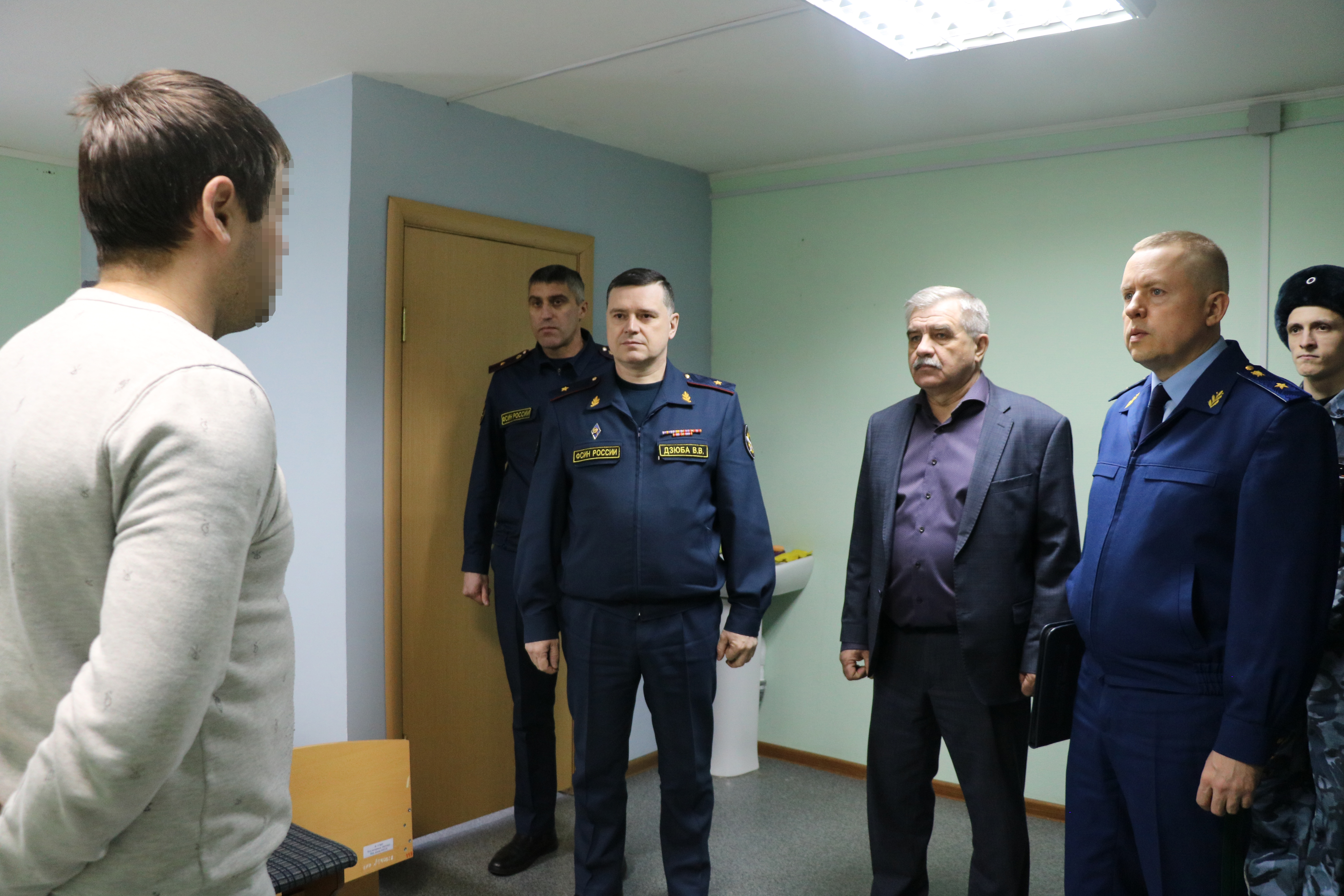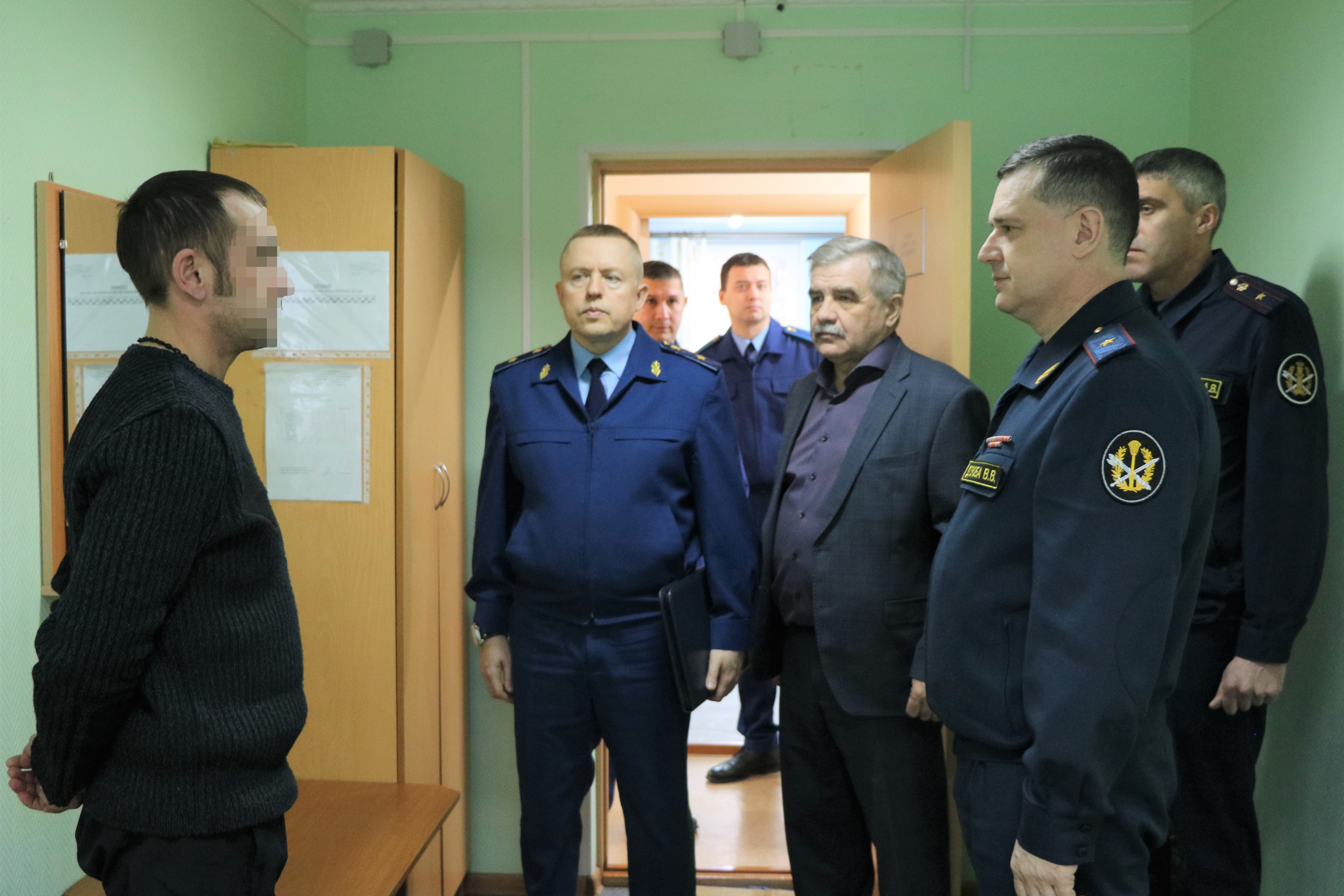 Заместитель прокурора республики Александр Попов совместно с Уполномоченным по правам человека в регионе Михаилом Закомалдиным и начальником УФСИН России по РБ Владиславом Дзюбой проверил состояние законности в Исправительном центре в г. Уфе.