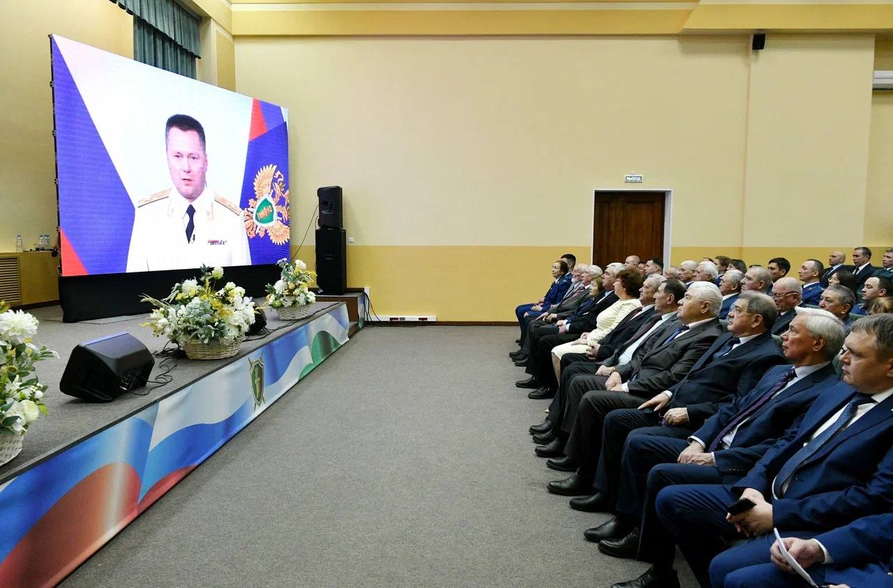 Мероприятие началось с видеопоздравления Генерального прокурора Российской Федерации Игоря Краснова в адрес сотрудников и ветеранов ведомства.