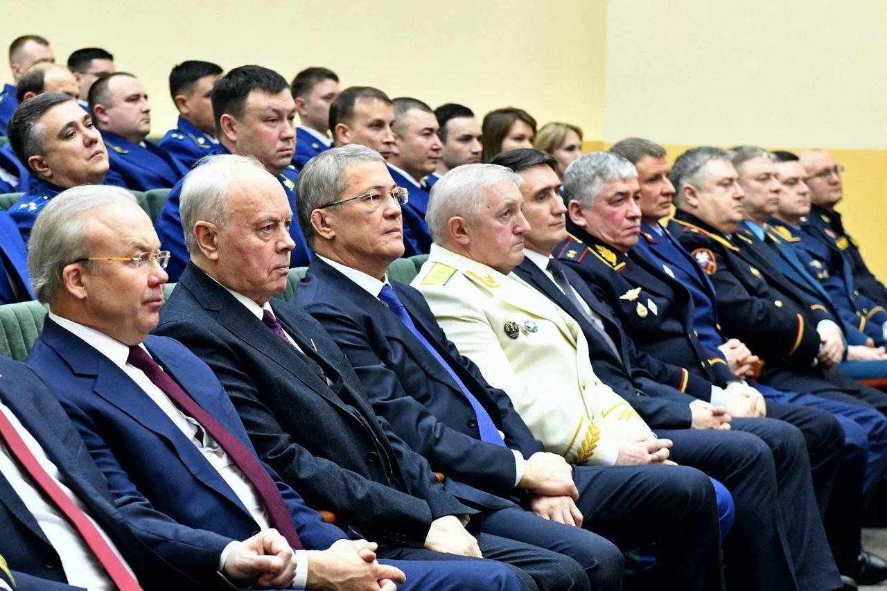 В мероприятии принял участие Глава Республики Башкортостан Радий Хабиров, Председатель Государственного Собрания – Курултая Республики Башкортостан Константин Толкачев, Премьер-министр Правительства Республики Башкортостан Андрей Назаров, Главный федеральный инспектор по Республике Башкортостан Алексей Касьянов, руководители судебной системы, правоохранительных органов и силовых структур.