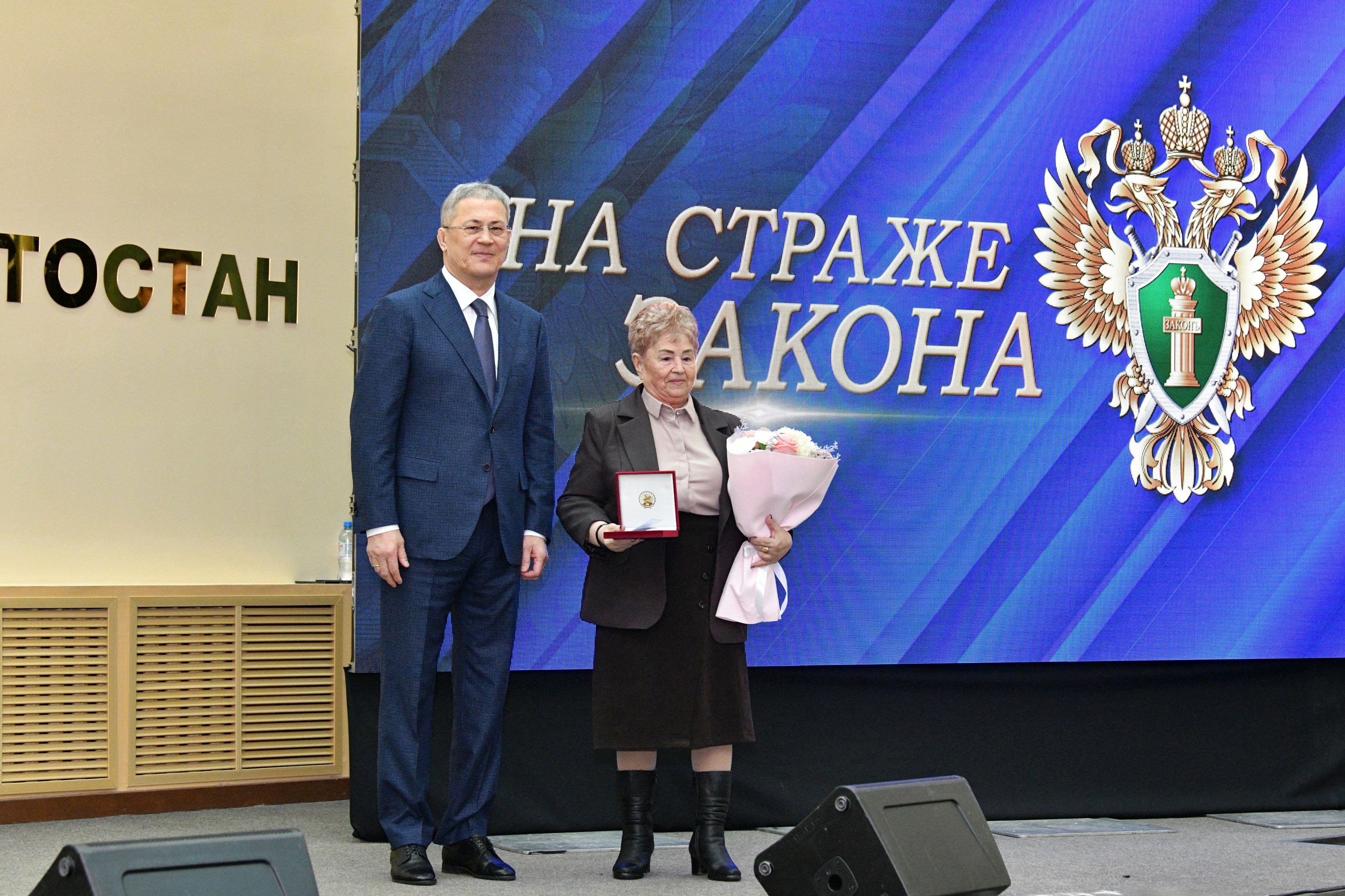 Глава республики Радий Хабиров поздравил присутствующих с профессиональным праздником, отметив, что прокуратура всегда была и остается оплотом надежности и правопорядка, являясь настоящим щитом для общества, основой сильного суверенного государства. Он выразил слова благодарности сотрудникам ведомства, в том числе в вопросе поддержки участников специальной военной операции и членов их семей. Также Глава региона вручил двоим ветеранам ведомства медали «За трудовую доблесть», одному из ветеранов присвоено почетное звание «Заслуженный юрист Республики Башкортостан».