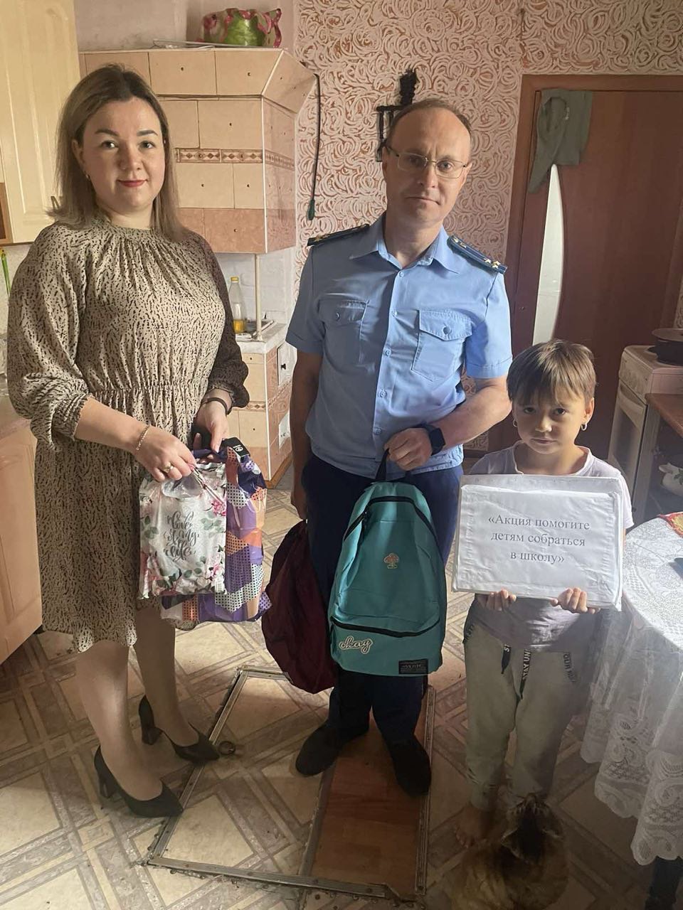 Представители надзорного ведомства поздравили детей с наступающим Днем знаний, подарили школьные рюкзаки и необходимые канцелярские принадлежности, вручили сладкие подарки.