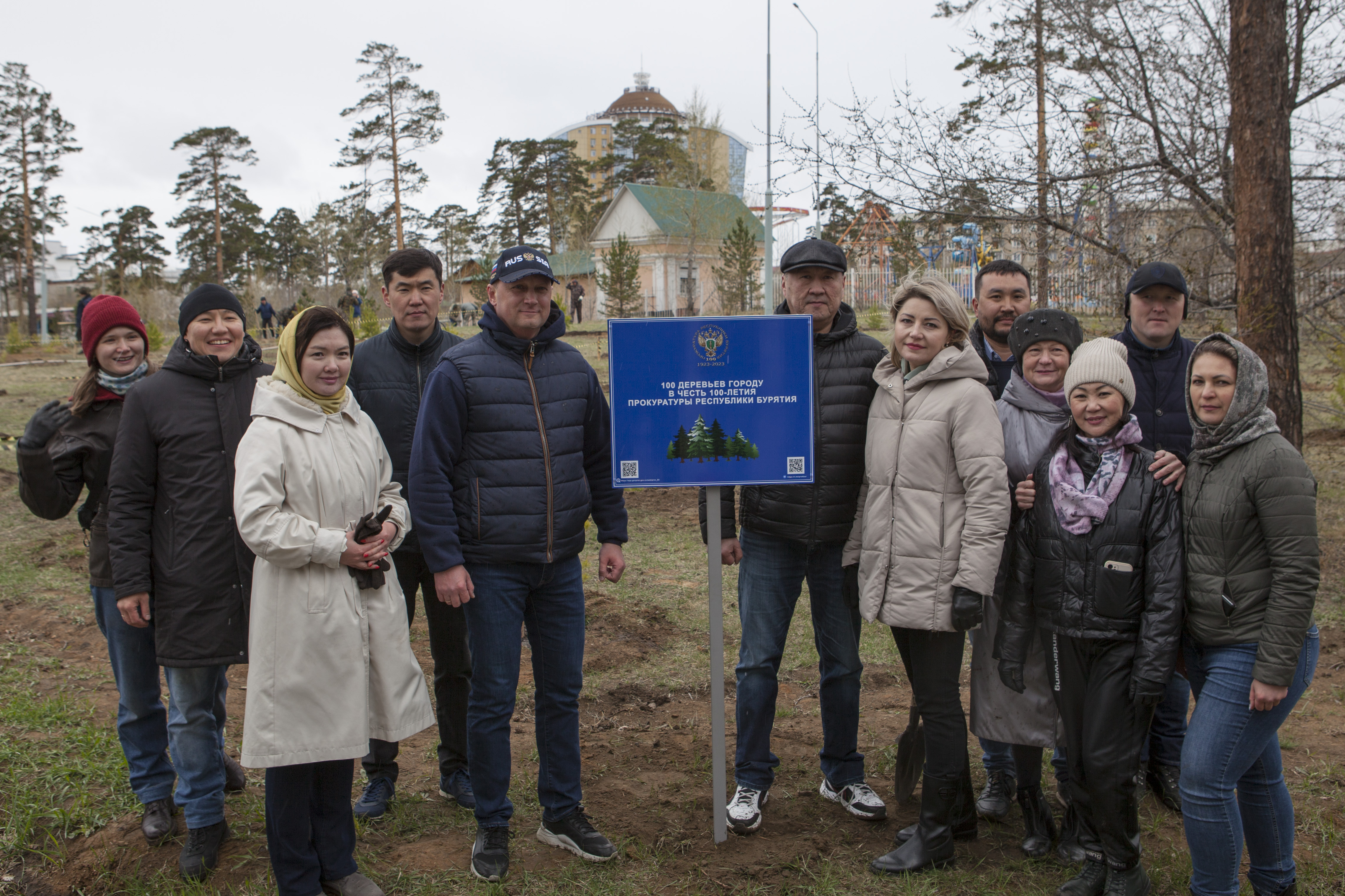 В преддверии празднования 100-летия со дня образования прокуратуры республики работники и ветераны прокуратуры под руководством исполняющего обязанности прокурора Бурятии Михаила Филичева совместно с Уполномоченным по правам ребенка в республике Натальей Ганькиной, руководителем Бурприроднадзора Мариной Дамдиновой, активистами детской футбольной лиги, Детского общественного совета провели экологическую акцию «100 деревьев городу в честь 100-летия прокуратуры Республики Бурятия».