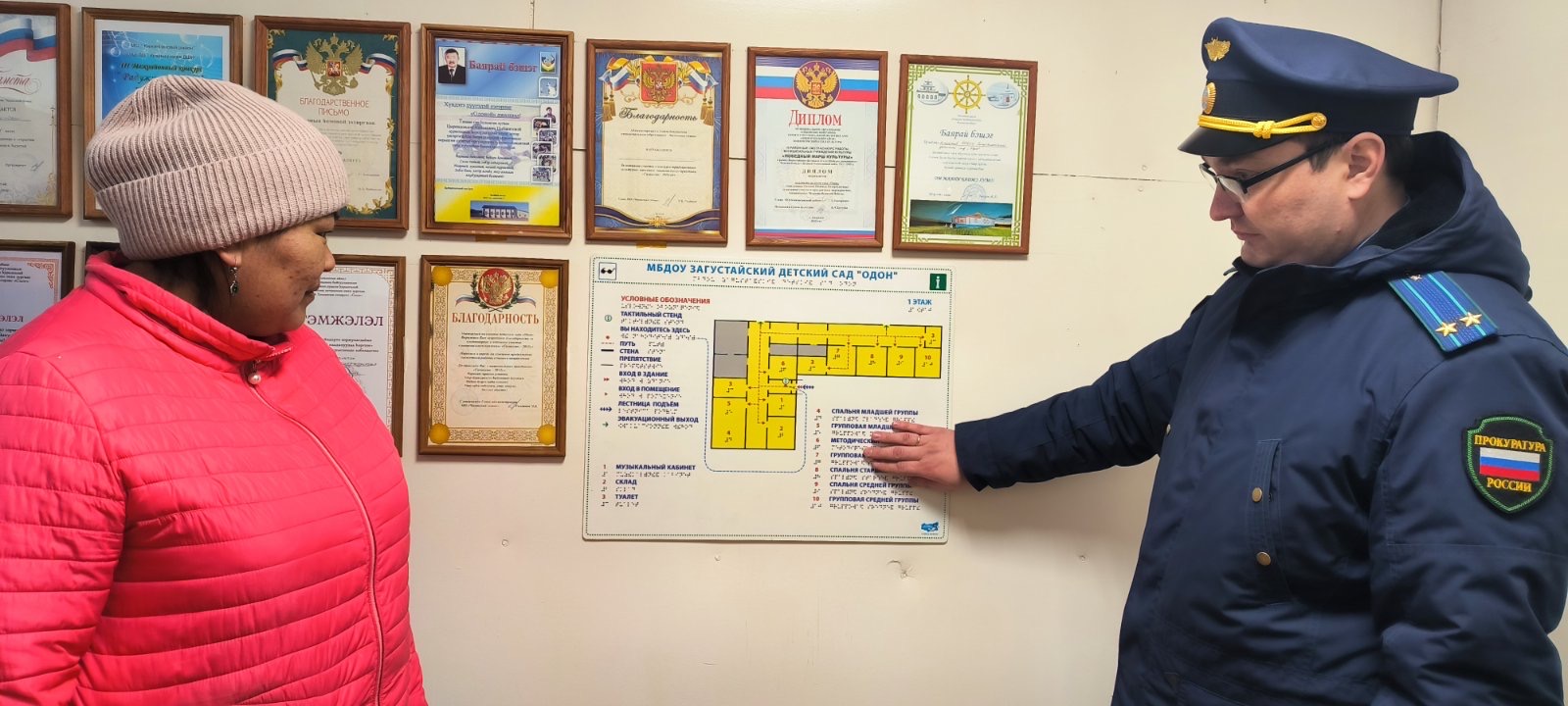 Прокуратура Кижингинского района проверила соблюдение законодательства о защите инвалидов в деятельности муниципального бюджетного дошкольного образовательного учреждения Загустайского детского сада «Одон».