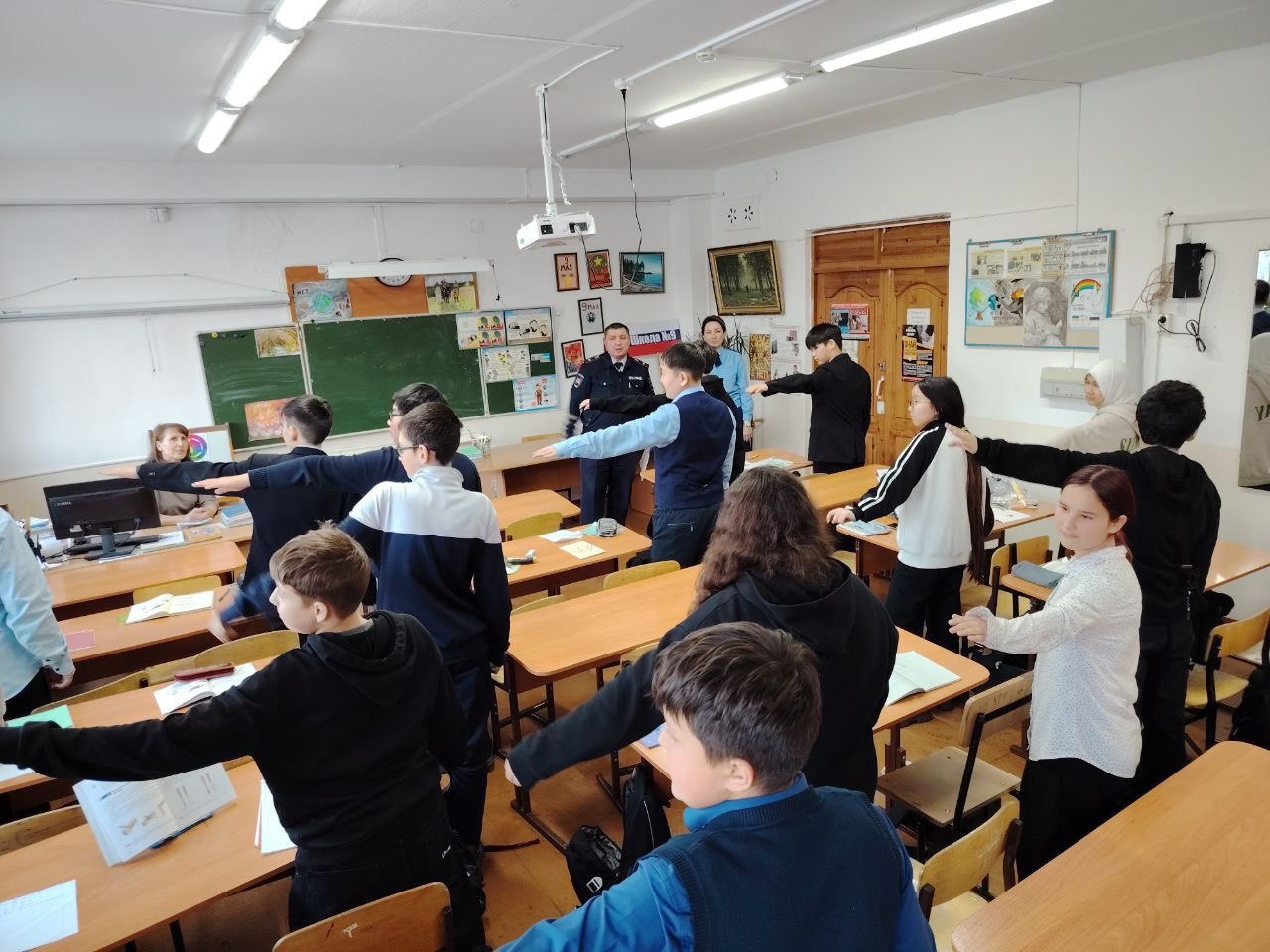 Во время встречи школьникам и студентам рассказали о необходимости проявлять бдительность при обнаружении подозрительных предметов, недопустимости участия в несанкционированных акциях протеста и распространении запрещенных материалов.