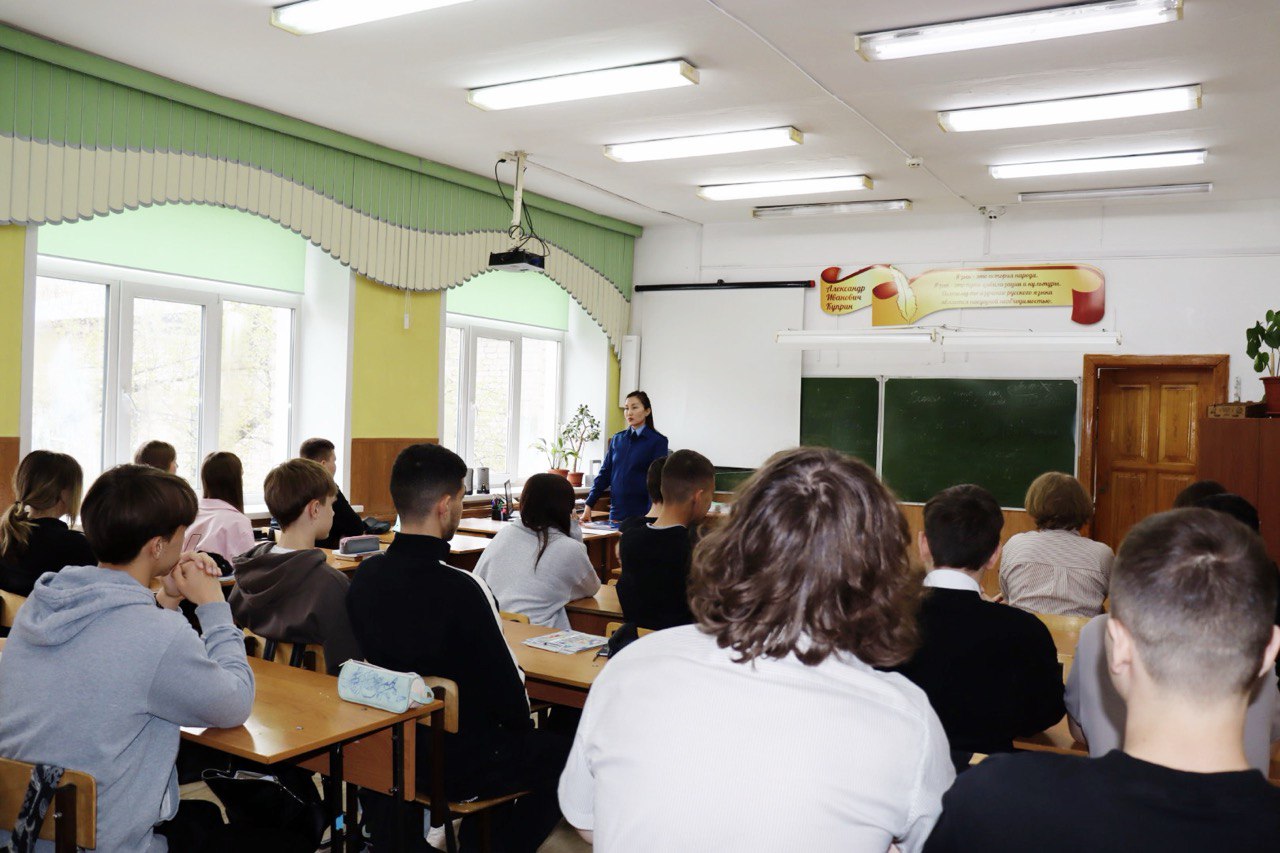 В рамках мероприятий по подготовке и проведению в 2025 году празднования 80-й годовщины Победы в Великой Отечественной войне 1941-1945 годов, повышения уровня правосознания и правовой культуры школьников МБОУ «Лицей № 6 г. Горно-Алтайска» помощником прокурора республики по взаимодействию со СМИ и общественностью Яной Туденевой проведена встреча с учащимися 9 классов.
