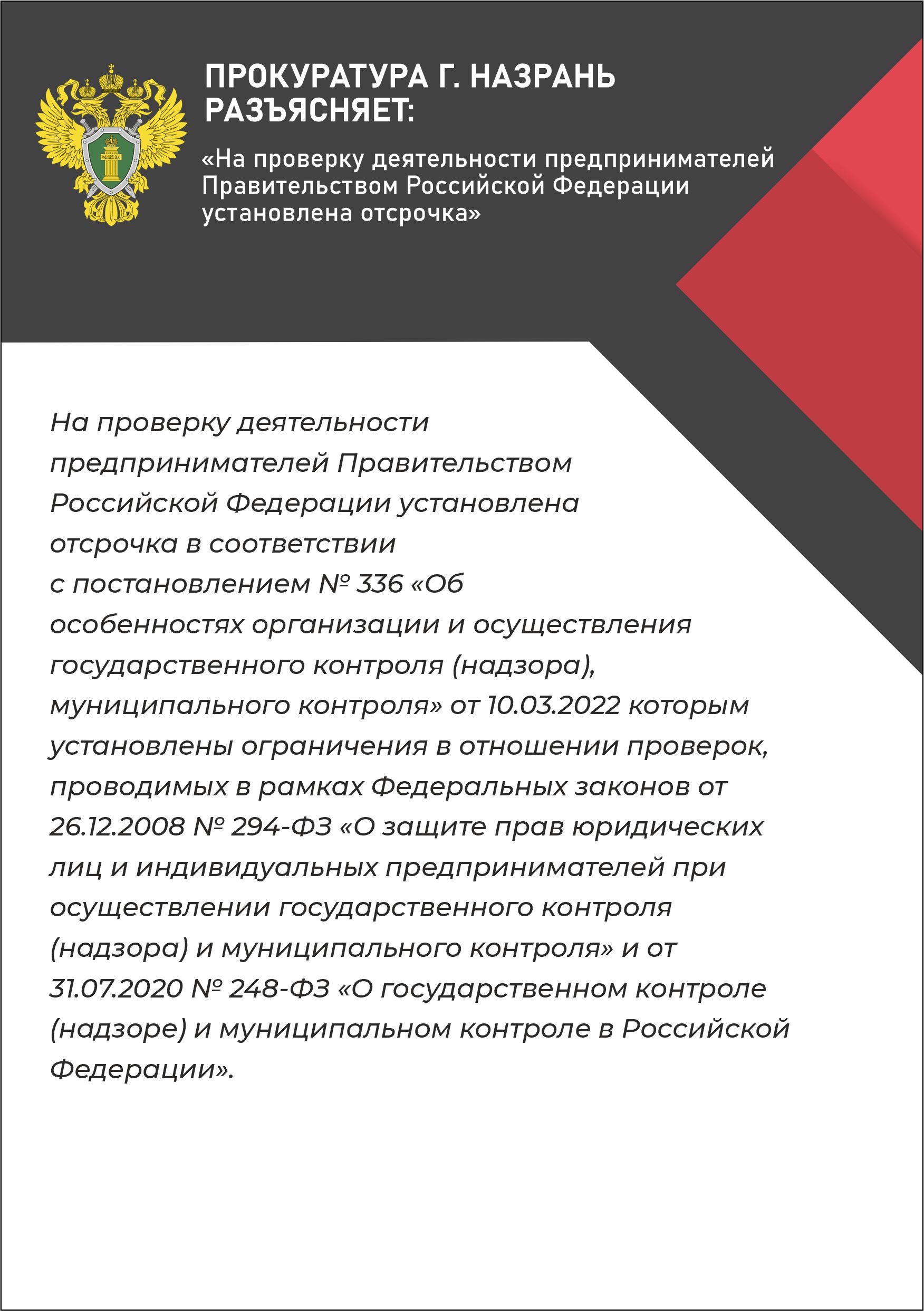 "На проверку деятельности предпринимателей Правительством РФ установлено отсрочка"
