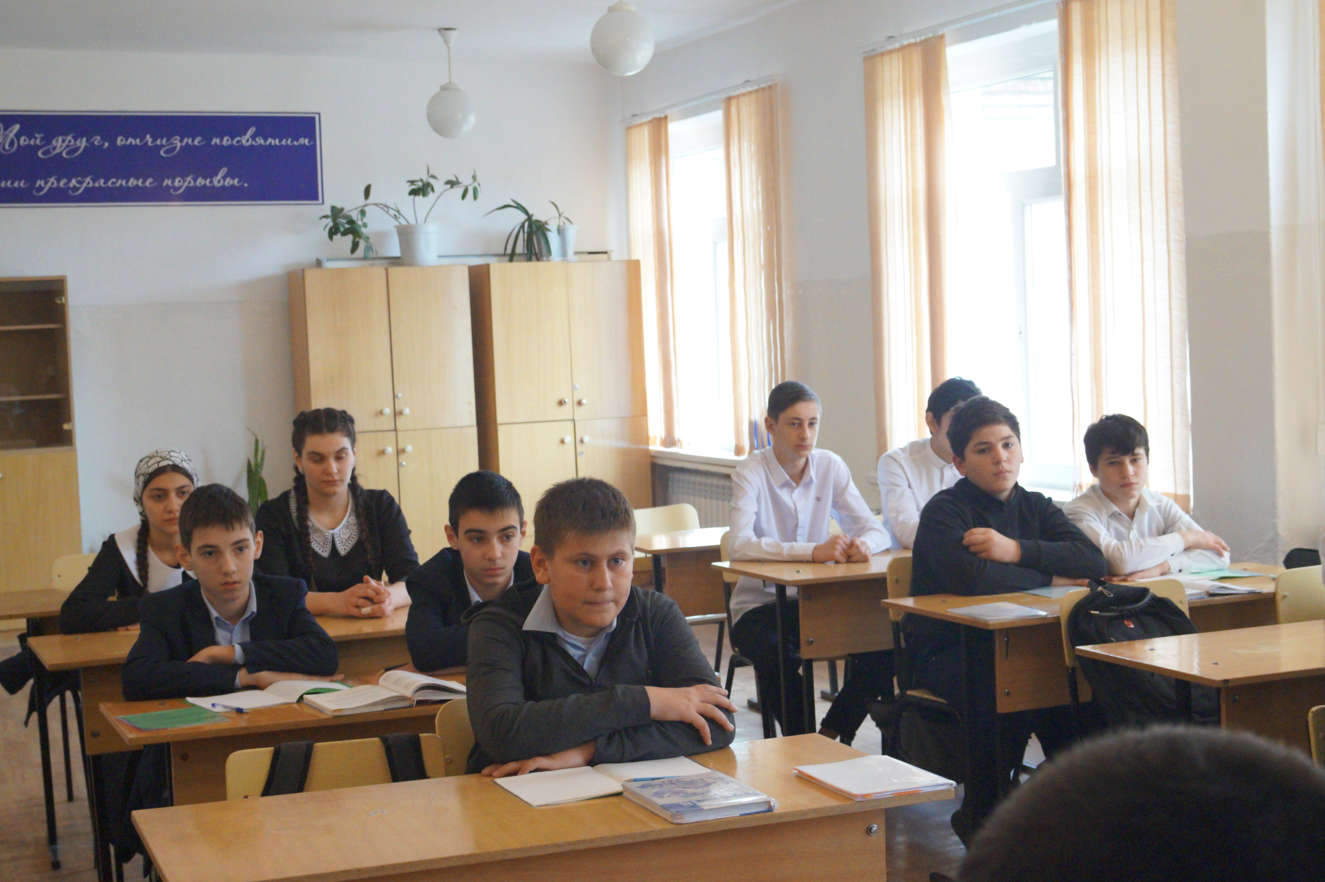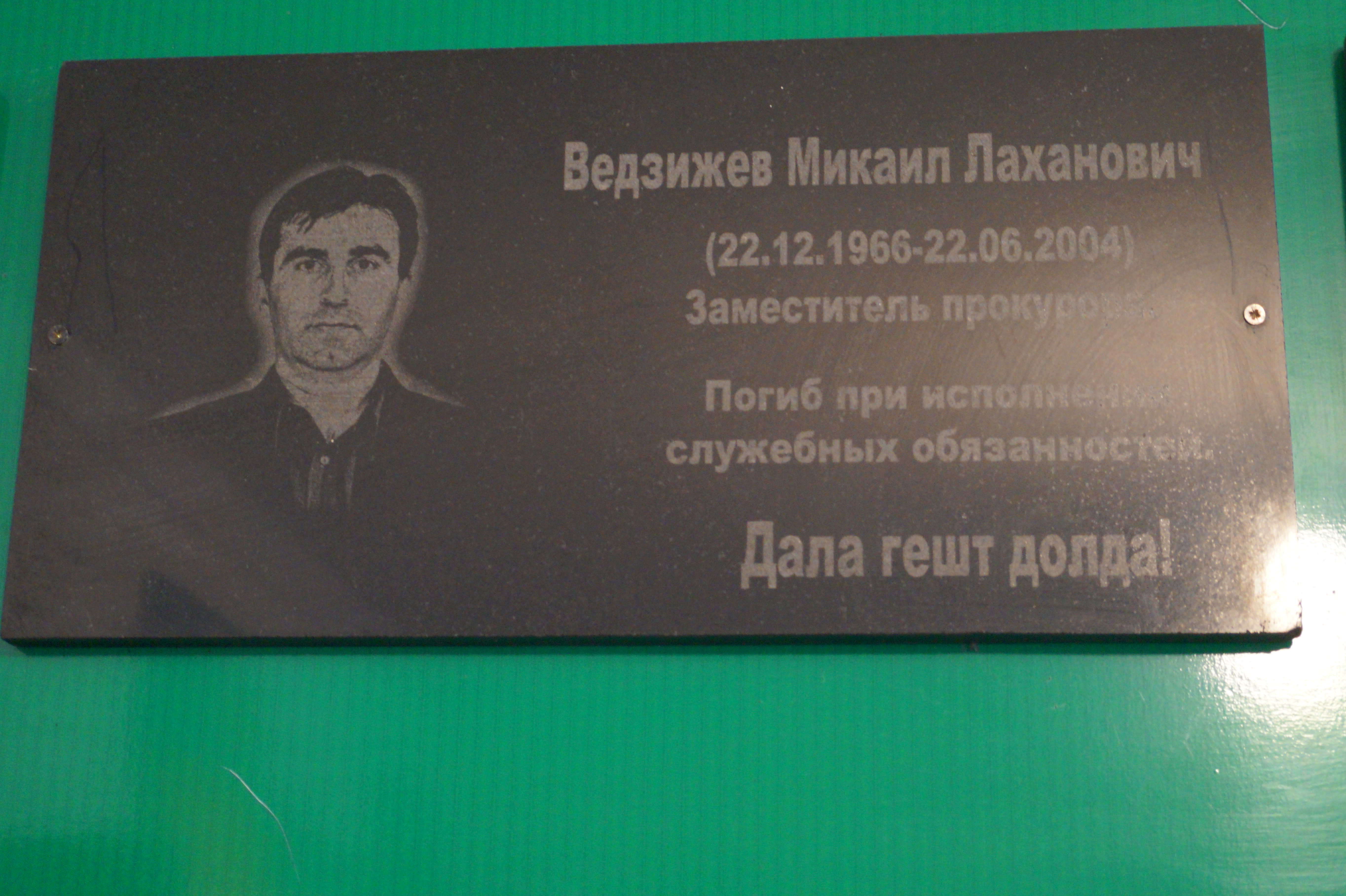 Прокурор Назрановского района поблагодарил коллектив учебного заведения за увековечивание памяти трагически погибшего работника прокуратуры, рассказав учащими и педагогам о жизни и гибели Микаила Ведзижева.