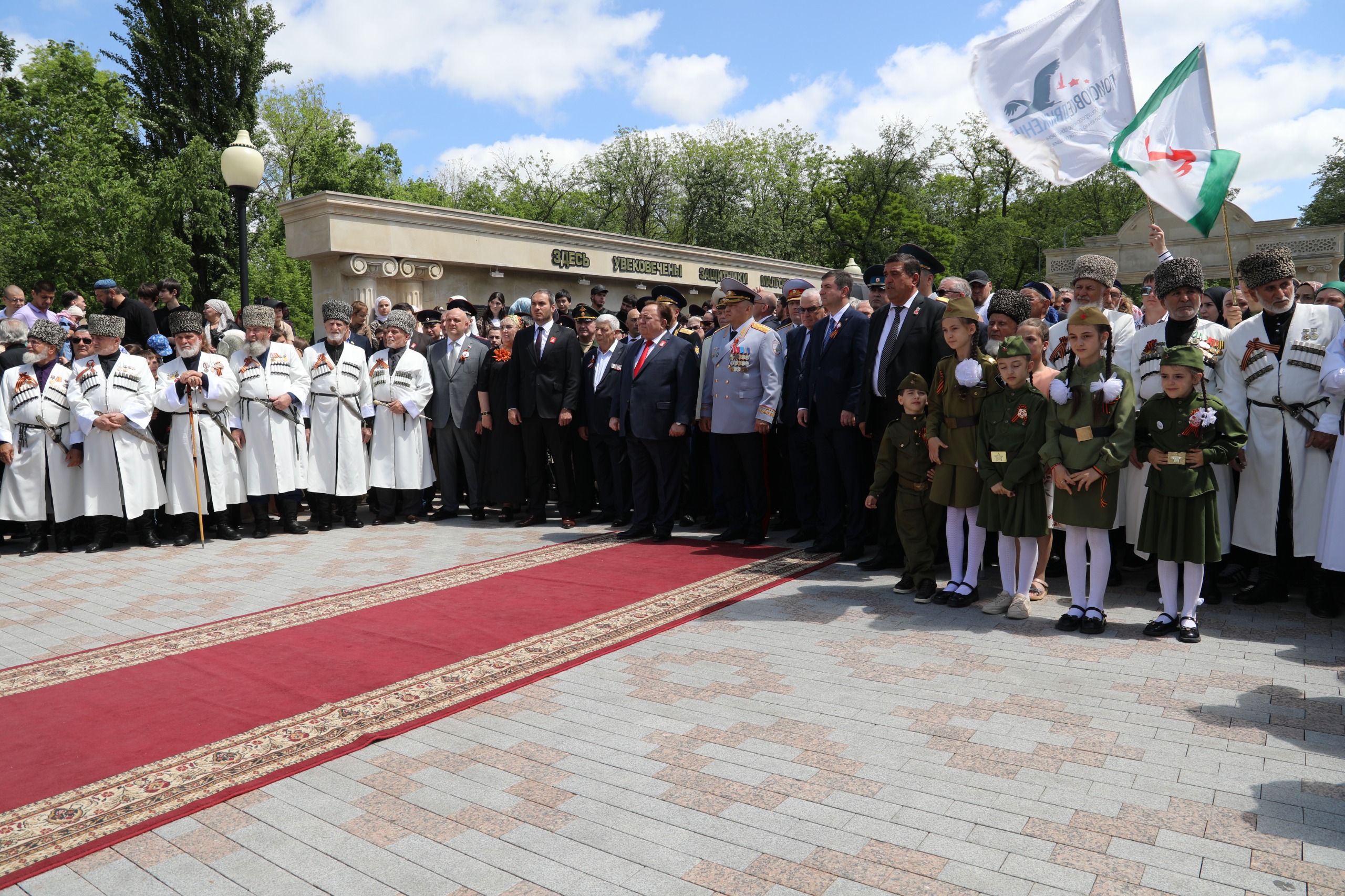 Сегодня, 9 мая 2025 года, прокурор Республики Ингушетия Андрей Васильченко принял участие в торжественных мероприятиях, посвященных 80-ой годовщине Победы в Великой Отечественной войне, проходившем в мемориальном комплексе «Слава» в городе воинской славы Малгобеке.