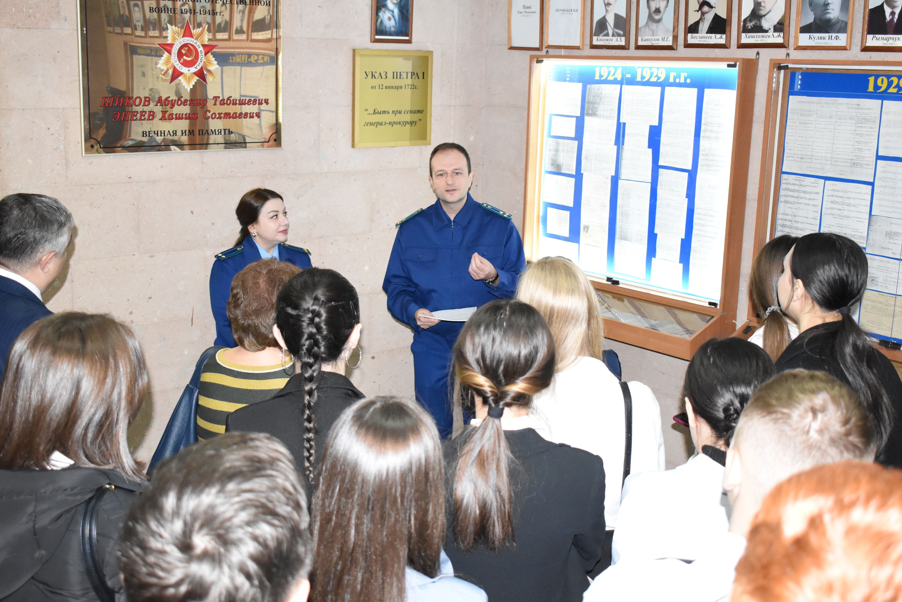 В актовом зале прокуратуры республики учащимся продемонстрирован фильм «На страже закона», посвященному истории образования прокуратуры Российской Федерации.