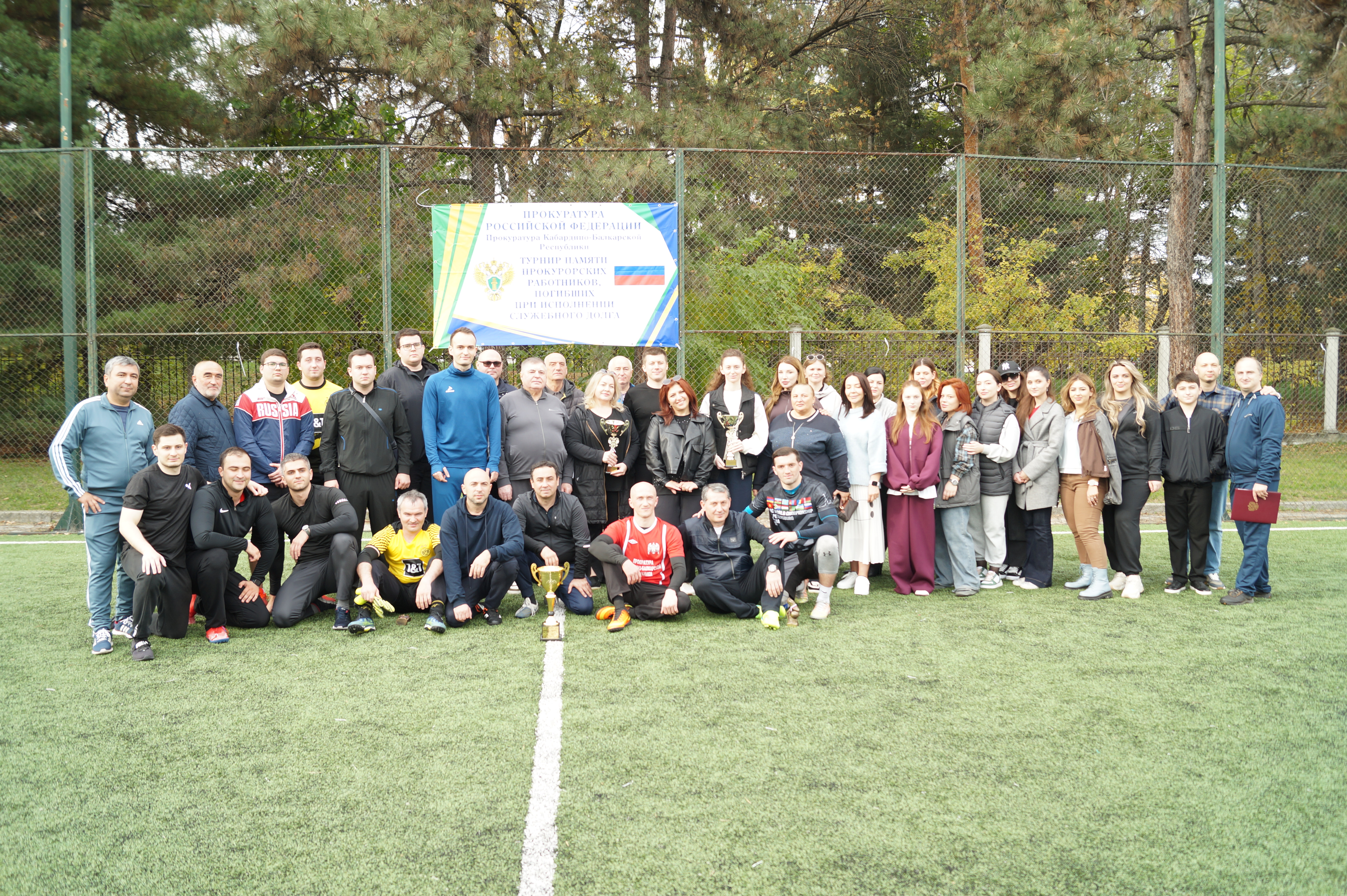 В минувшие выходные на площадке ГКУ Кабардино-Балкарской Республики «Центр спортивной подготовки сборных команд» в г. Нальчике состоялся турнир по мини-футболу, посвященный памяти прокурорских работников, погибших при исполнении служебных обязанностей – Махова Р.Б. и Токова М.В.