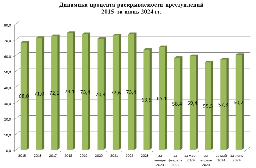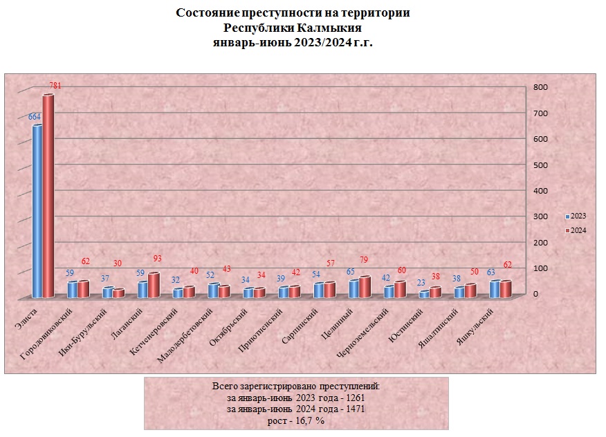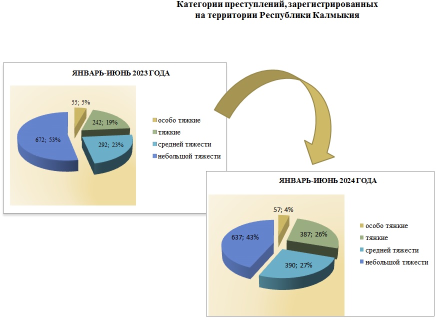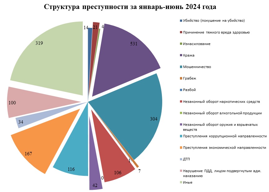 Структура преступности в Республике Калмыкия по видам преступлений за январь-июнь 2024 года
