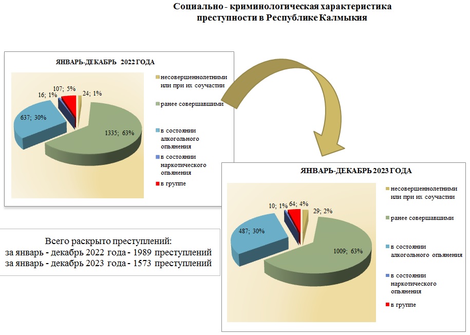 Структура преступности в Республике Калмыкия по видам преступлений за январь - декабрь 2023 года