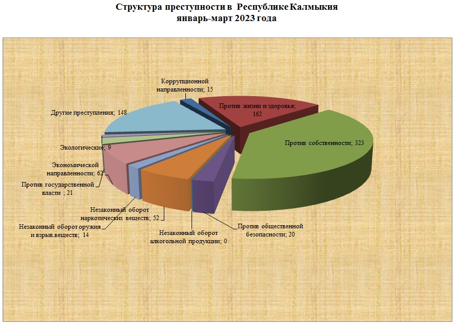 Структура преступности в Республике Калмыкия по видам преступлений за январь - апрель 2023года