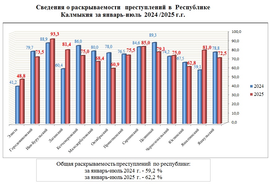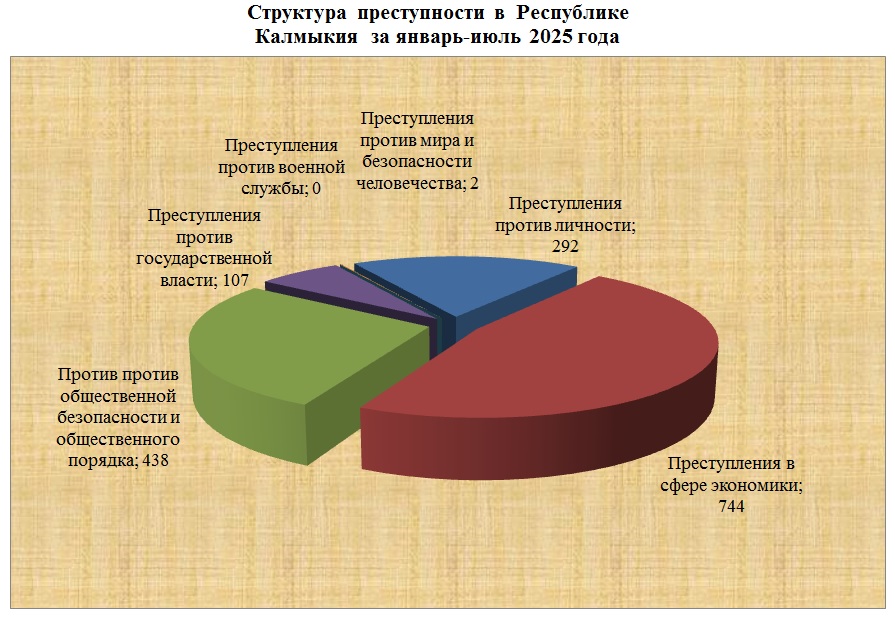 Структура преступности в Республике Калмыкия по видам преступлений за январь-июль 2025 года