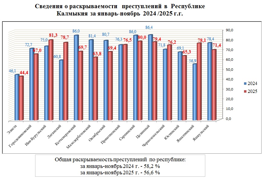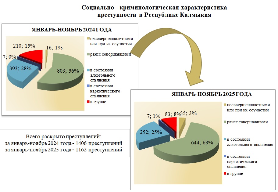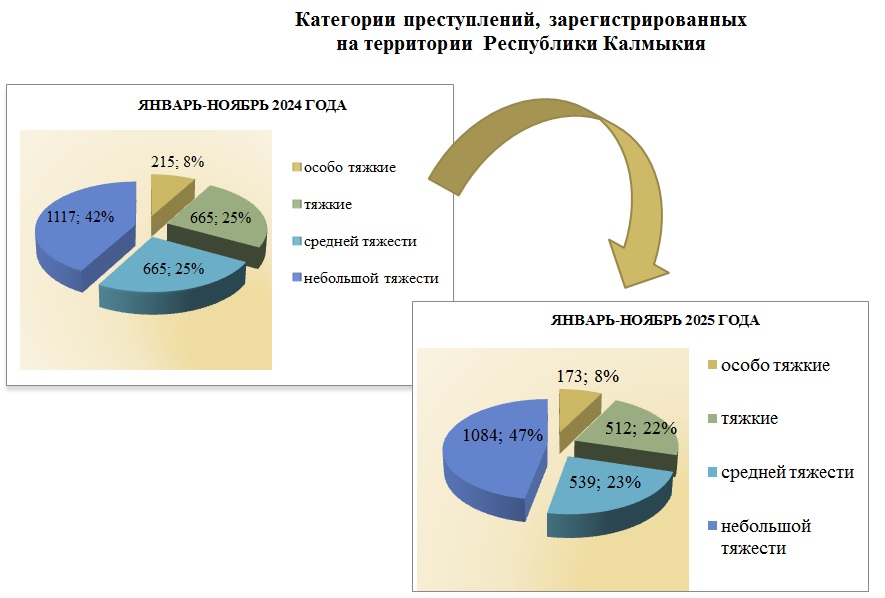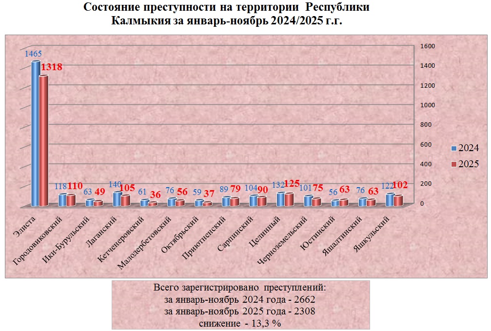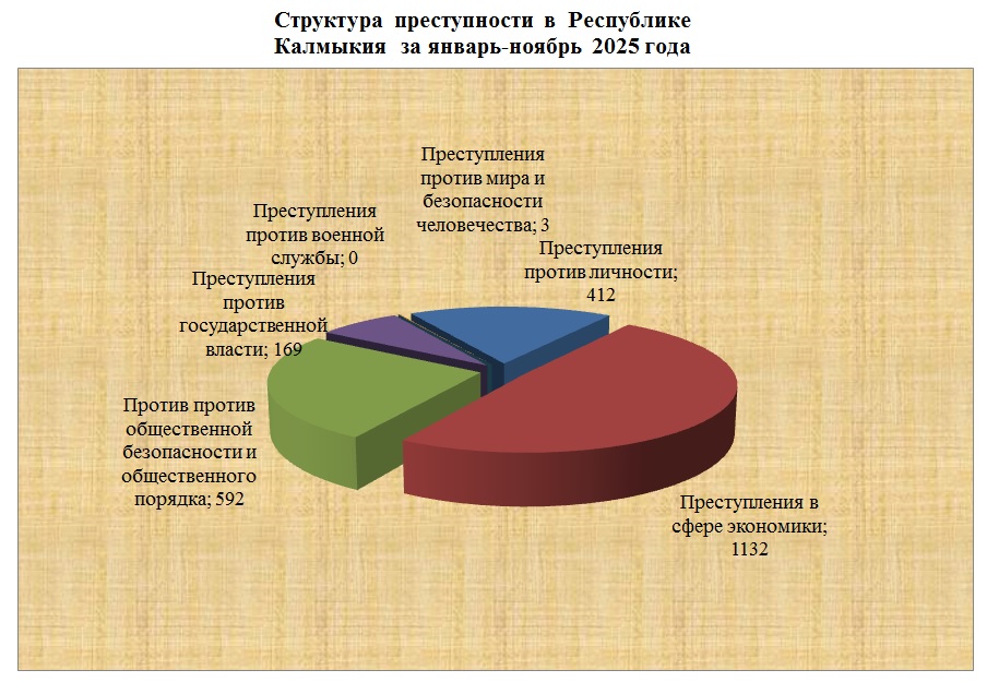 Структура преступности в Республике Калмыкия по видам преступлений за январь-ноябрь 2025 год