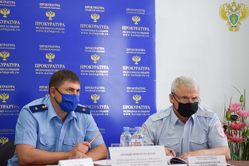 В преддверии Общероссийского дня голосования по поправкам в Конституцию Российской Федерации прокурор республики Роман Тютюник и министр внутренних дел Калмыкии Сергей Никифоров провели совместный прием граждан