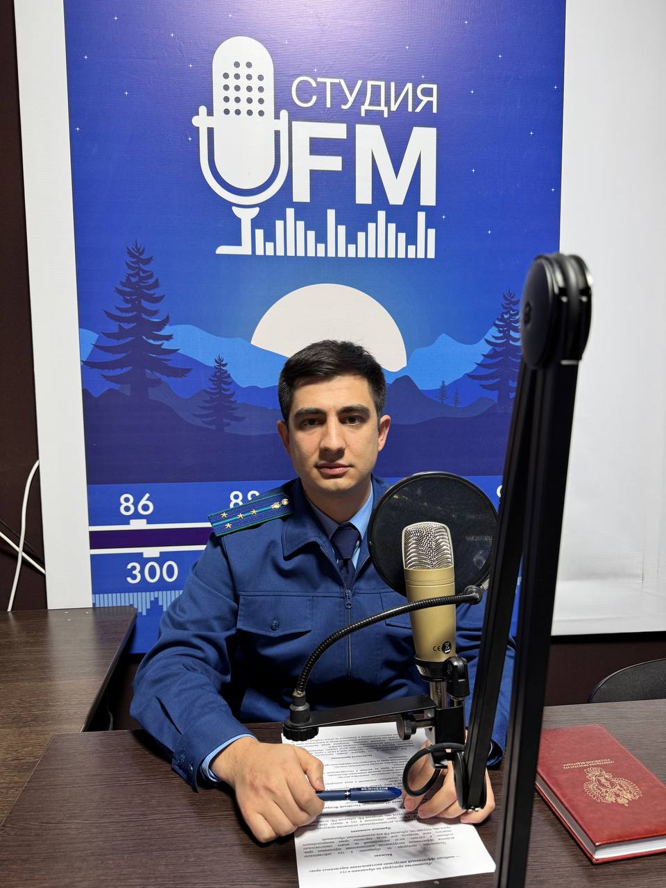 Сегодня, 25 декабря 2025 года, прокурор гражданско-судебного отдела прокуратуры республики Ислам Хачиров принял участие в прокурорской радиопрограмме «Слово прокурору» на радиостанции «КЧР ФМ».