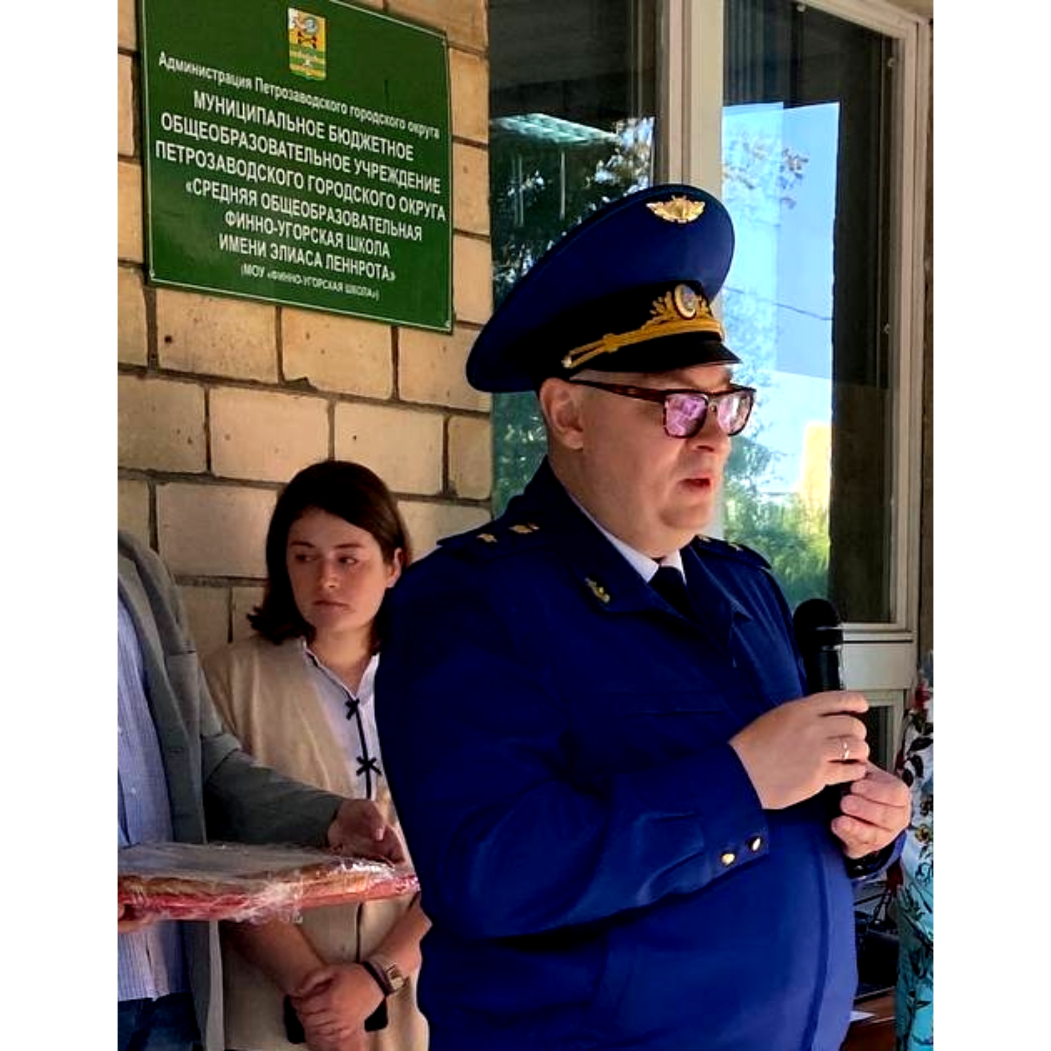 Сегодня, 1 сентября 2023 года, прокурор Республики Карелия Дмитрий Харченков посетил торжественную линейку в муниципальном образовательном учреждении «Финно-угорская школа имени Элиаса Леннрота».