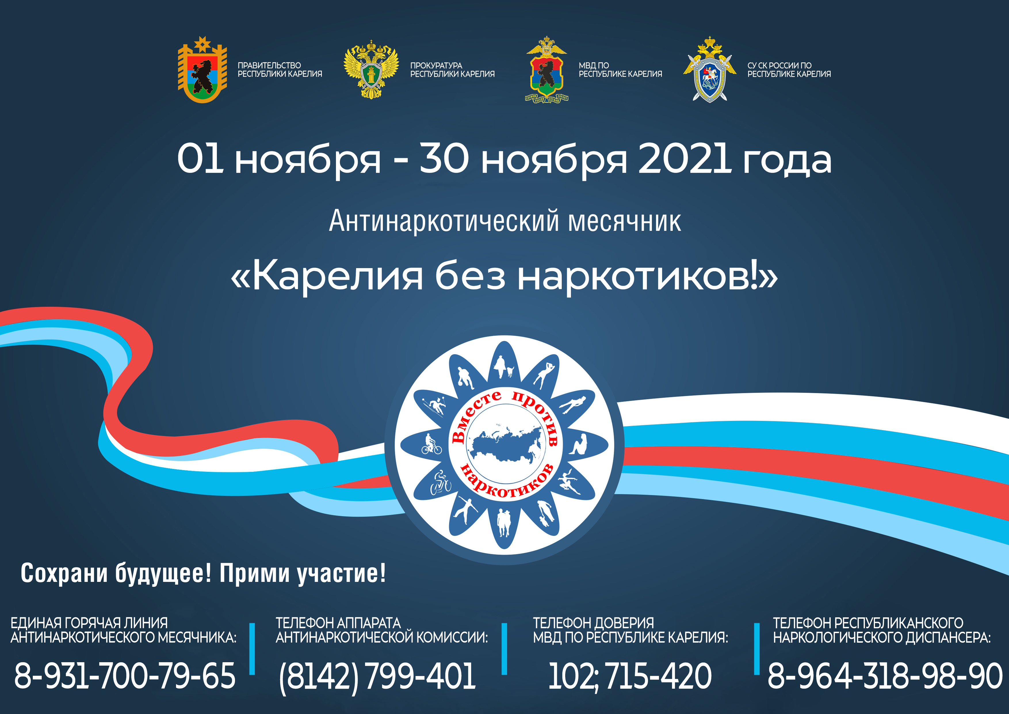 С 01 по 30 ноября 2021 года в республике с привлечением уполномоченных органов будет проведена оперативно-профилактическая акция «Карелия без наркотиков!».