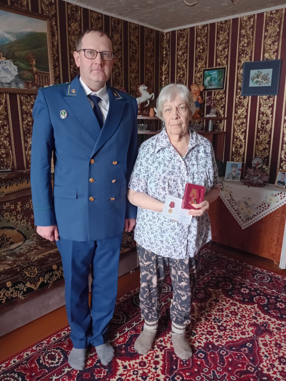 Труженице тыла Клавдии Федоровне Дейнеко и бывшей несовершеннолетней узнице концлагерей Марии Сергеевне Бознак были вручены юбилейные медали «80 лет Победы в Великой Отечественной войне 1941-1945 гг.» и подарки.