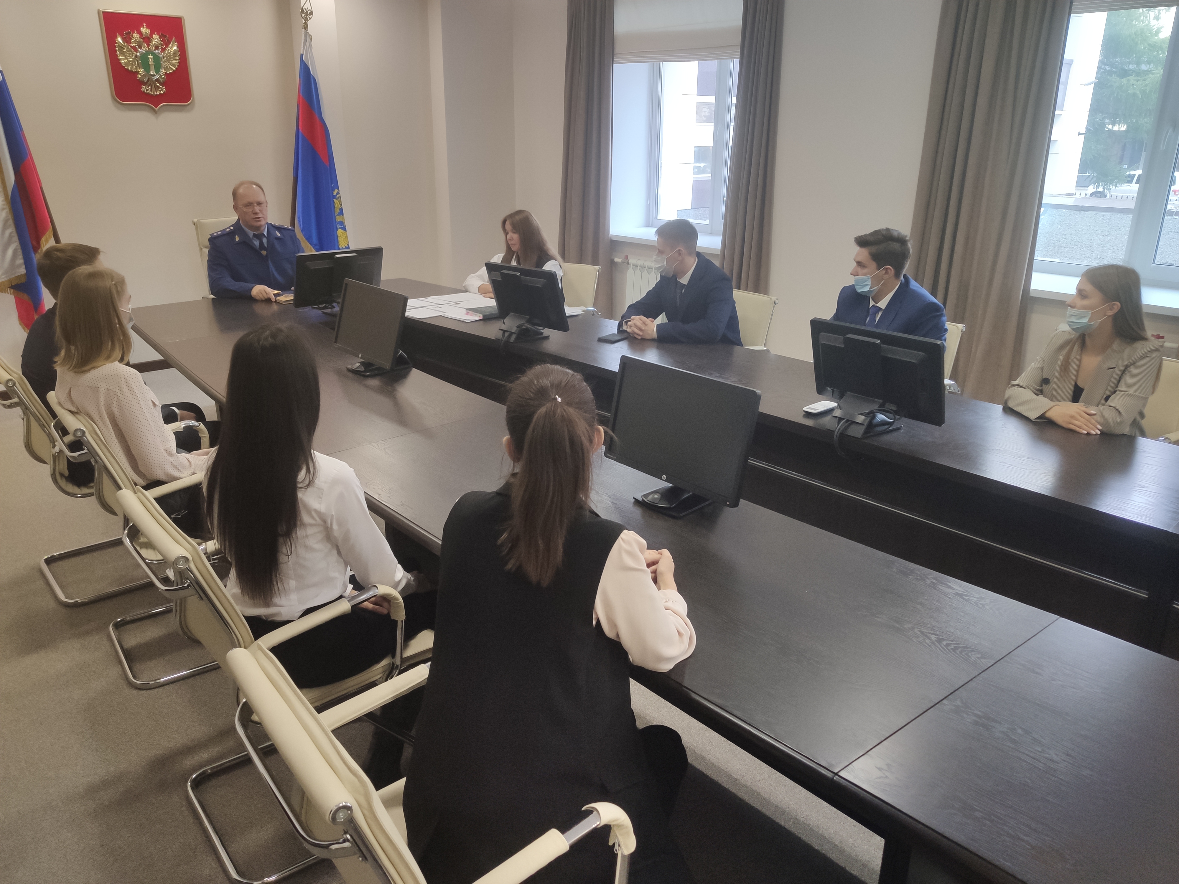 21 сентября 2021 года прокурор республики Николай Егоров провел встречу с выпускниками, завершившими обучение в рамках целевой подготовки в институтах прокуратуры – Санкт-Петербургском юридическом институте (филиале) Университета прокуратуры Российской Федерации, Уральском государственном юридическом университете, Саратовской государственной юридической академии.