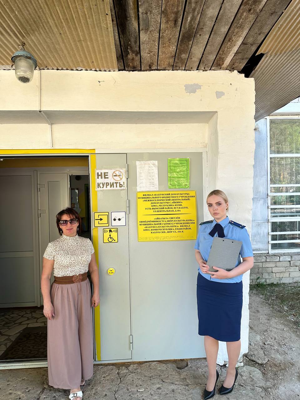 Прокуратура Усть-Вымского района по поступившему обращению совместно с председателем Усть-Вымской районной организации КРО ООО «Всероссийское общество инвалидов» провела проверку исполнения законодательства о доступности объектов социальной инфраструктуры для инвалидов в деятельности межпоселенческого дома культуры поселка Казлук.