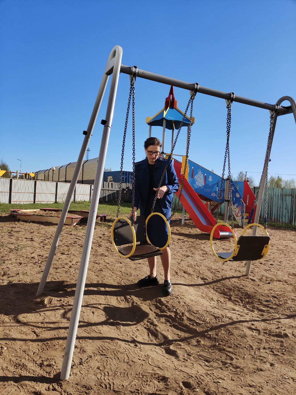 При проверке, проведенной с привлечением специалиста по безопасным детским площадкам, было установлено, что на детской площадке имеются незащищённые выступающие концы болтовых соединений на поверхностях игрового оборудования, оплётка цепей качелей находится в ненадлежащем состоянии, имеются многочисленные поломки игровых интерактивных конструкций.