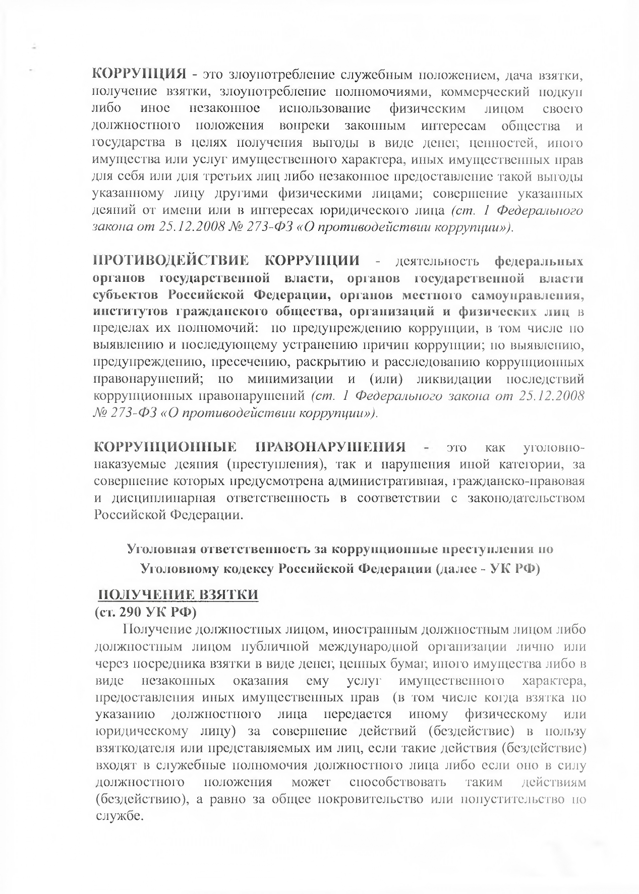(Федеральный закон от 15 декабря 2008 года № 273-ФЗ «О противодействии коррупции»).