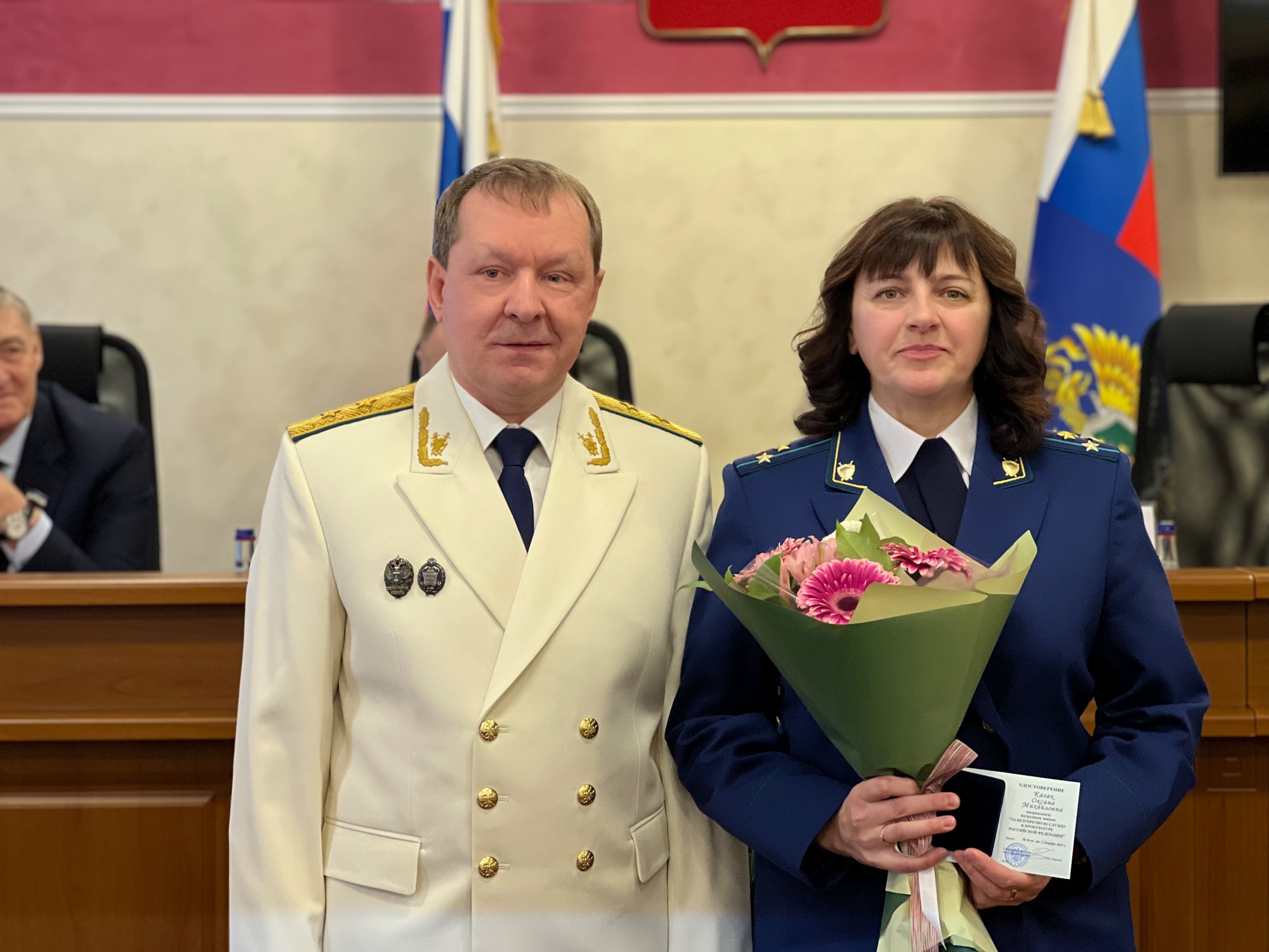 Нагрудным знаком «За безупречную службу» награждена старший помощник прокурора республики Оксана Казак.