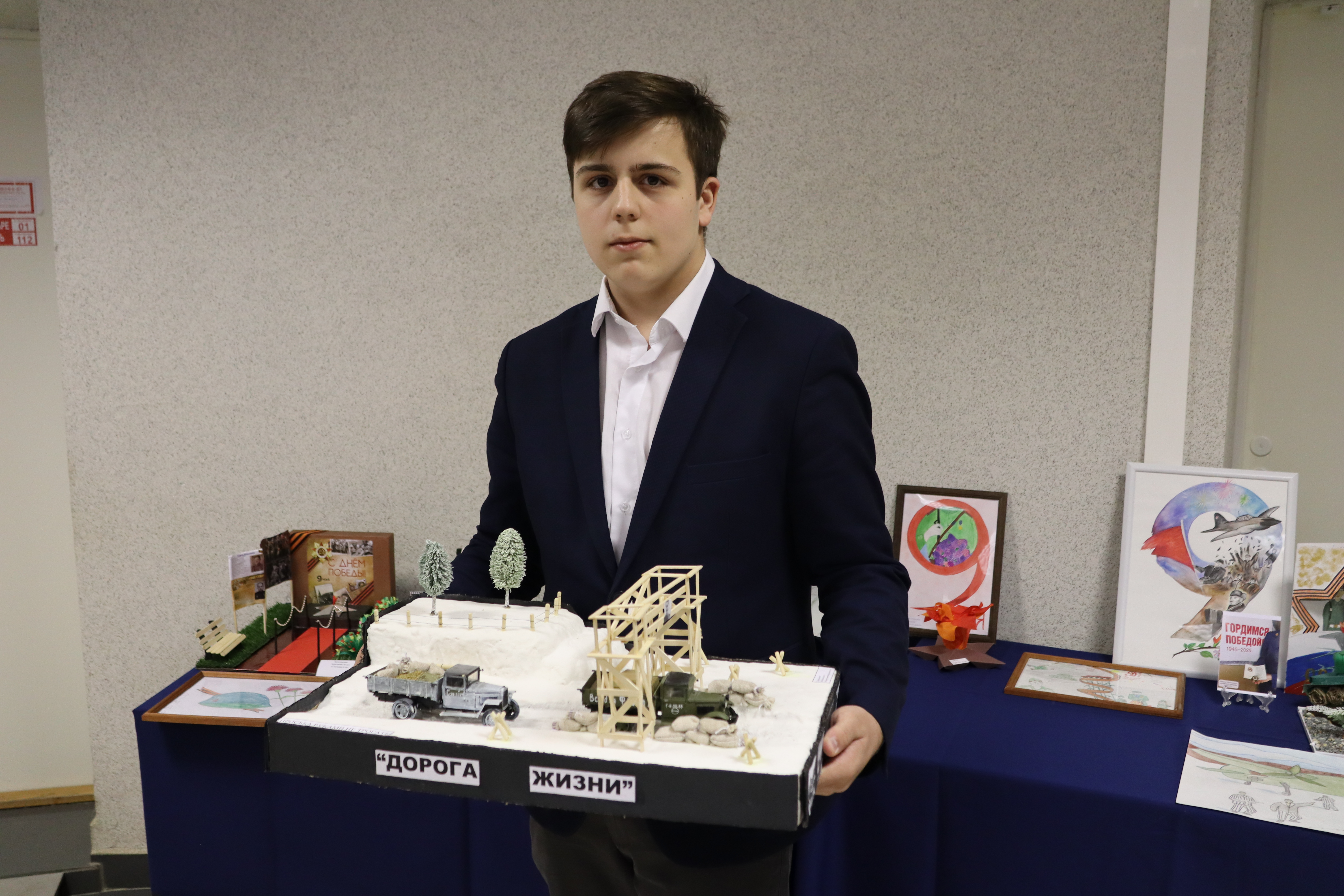 Победителем в номинации «поделки» признан Петрунин Михаил, которым представлена авторская работа «Дорога жизни». Эта поделка не только отражает важную историческую тему – показывает путь, по которому грузовики доставляли продовольствие и медикаменты через Ладожское озеро в блокадный Ленинград, но и служит напоминанием о мужестве и стойкости людей во время блокады.